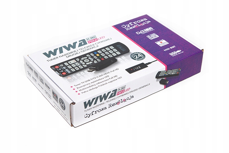 Сучасний світлодіодний тюнер WIWA H.265 MINI другого покоління для встановлення в непомітному місці на задній панелі телевізора. Зв'язок з пультом дистанційного керування здійснюється за допомогою дискретного інфрачервоного приймача, що входить у комплект. Тюнер підтримує безкоштовну трансляцію каналів цифрового ефірного телебачення за новітньою технологією H.265/HEVC. Це стандарт, який діятиме в Польщі. Тюнер сумісний зі старими технологіями H.264 і MPEG-4, які є поточними стандартами мовлення в Польщі. Управління тюнером здійснюється за допомогою пульта дистанційного керування з функцією Memo Control (програмовані кнопки - дозволяють працювати з декодером і ТВ-приймачем одним пультом). Екранне меню польською мовою, яке відображається на екрані телевізора, є чітким, інтуїтивно зрозумілим і простим у використанні. Все це укладено в невеликий міцний корпус.