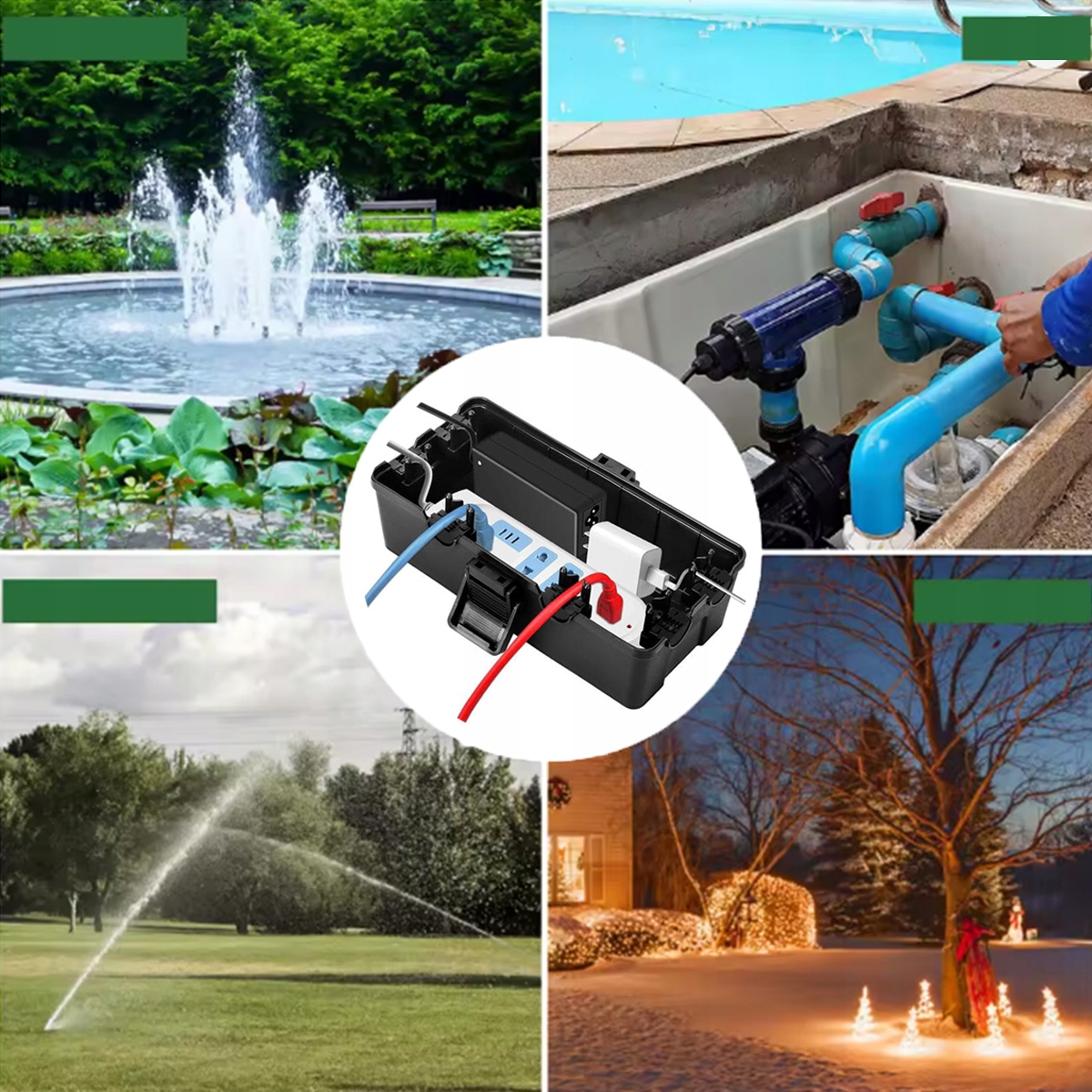 Водонепроникна кабельна коробка підходить для різноманітних застосувань усередині та поза приміщеннями, таких як садові та газонні електроінструменти, святкові ліхтарі, ландшафтні прикраси, насоси для басейнів, фонтани, рибні ставки, обігрівачі патіо, кондиціонери, камери спостереження тощо.