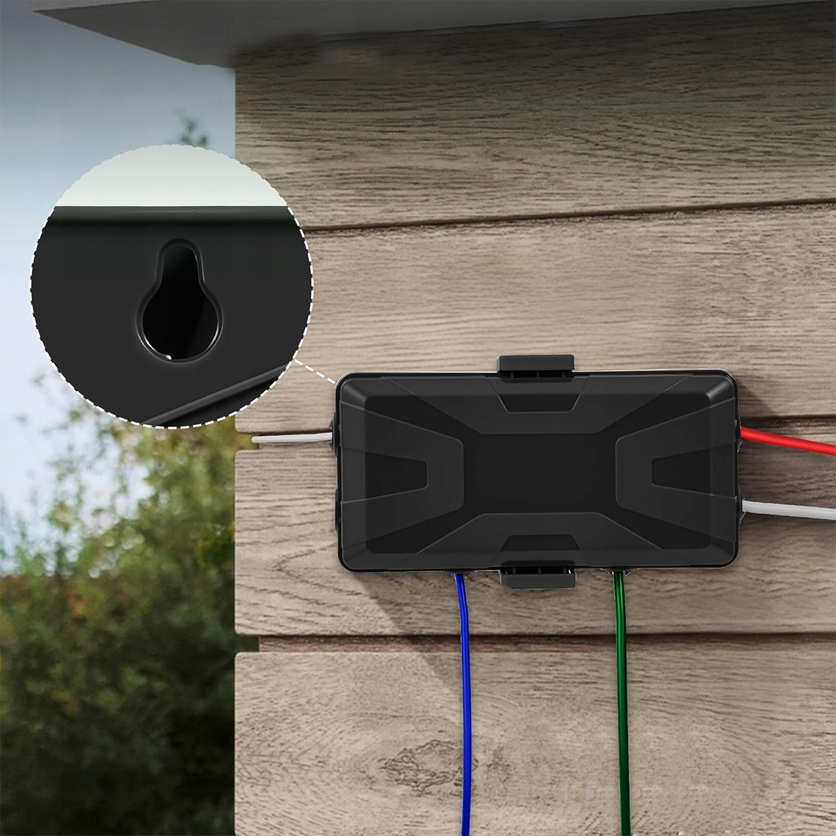 Просто помістіть штекери у водонепроникну кабельну коробку, закріпіть її затискачами, оберніть гумовою прокладкою та закрийте коробку. Водонепроникна кабельна коробка оснащена двома монтажними отворами, які дозволяють легко повісити її на стіну.