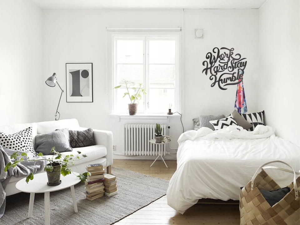 Напис не накручується безпосередньо до стіни лише за допомогою відстаней, він належним чином розміщує все. Потім напис добре відстань і створює дивовижний ефект - глибина.