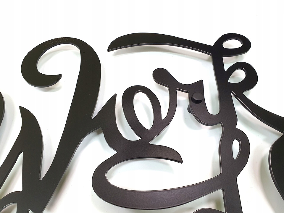 Цей напис не є плоскою наклейкою, вона не загине на стіну, з трохи освітленим інтер'єром він створить цікаву прикрасу. Він був виготовлений з товстого шматка металу. Тому він чіткий і специфічний. Це не штучний матеріал, а шматок важкої сталі.