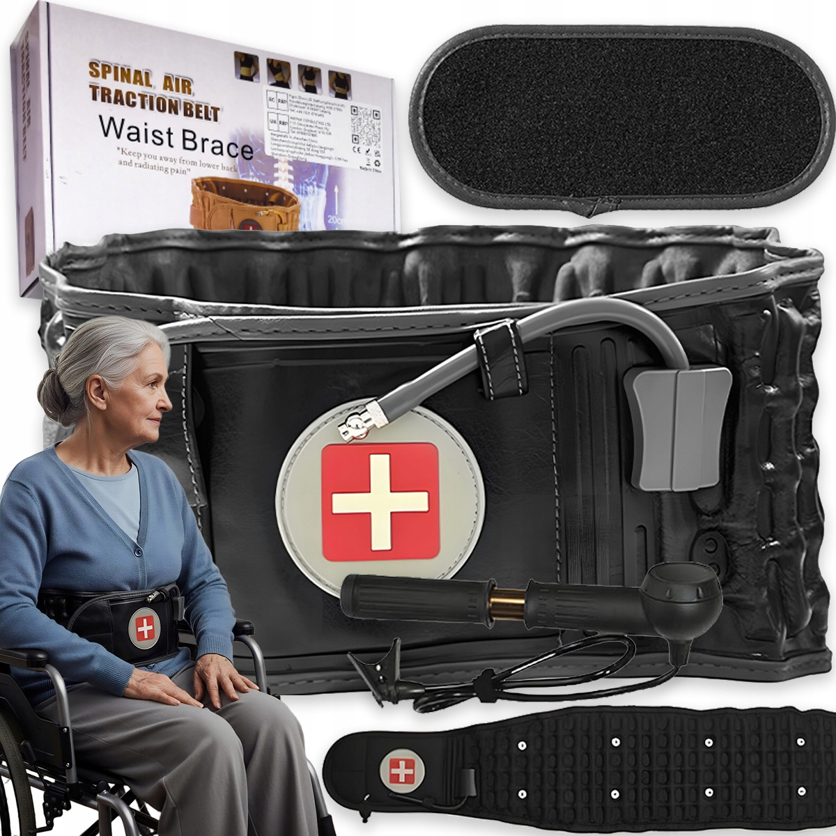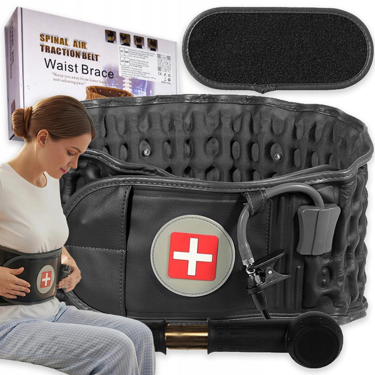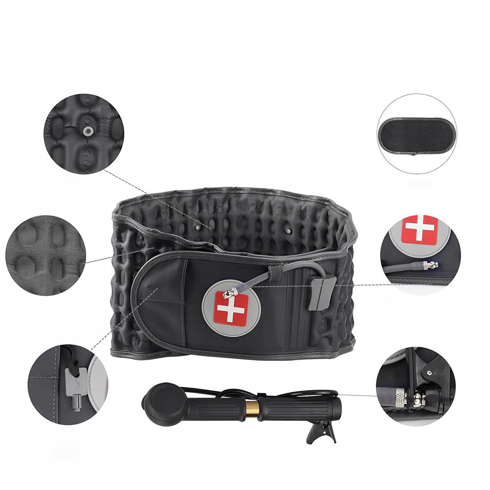 - Цей надувний декомпресійний пояс розроблено спеціально для лікування болю в попереку, забезпечує полегшення та корекцію, звільняє защемлені нерви, допомагає вам позбутися болю в спині та насолоджуватися здоровим і щасливим життям.