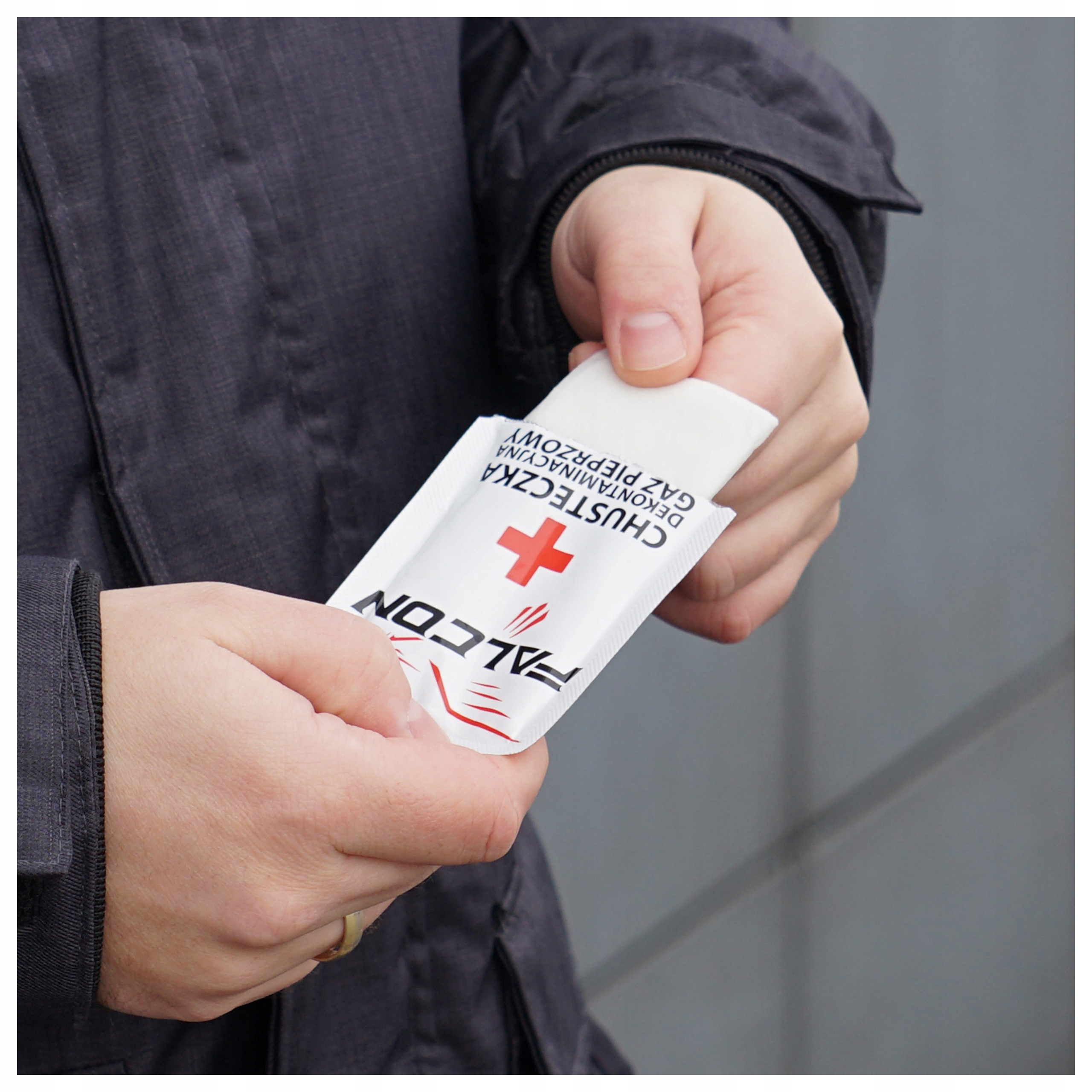 Нейтралізуюча (дезактивуюча) серветка нейтралізує дію перцевих балончиків, КС, біологічних газів, перцевих балончиків ОС та інших подразливих речовин. Носова хустка захищає від впливу речовин, що виводять з ладу під час несподіваного нападу. Хустка також полегшує наслідки контакту з речовинами, що втрачають працездатність. Нейтралізує відчуття печіння та повертає зір після подразнення сльозогінним газом.