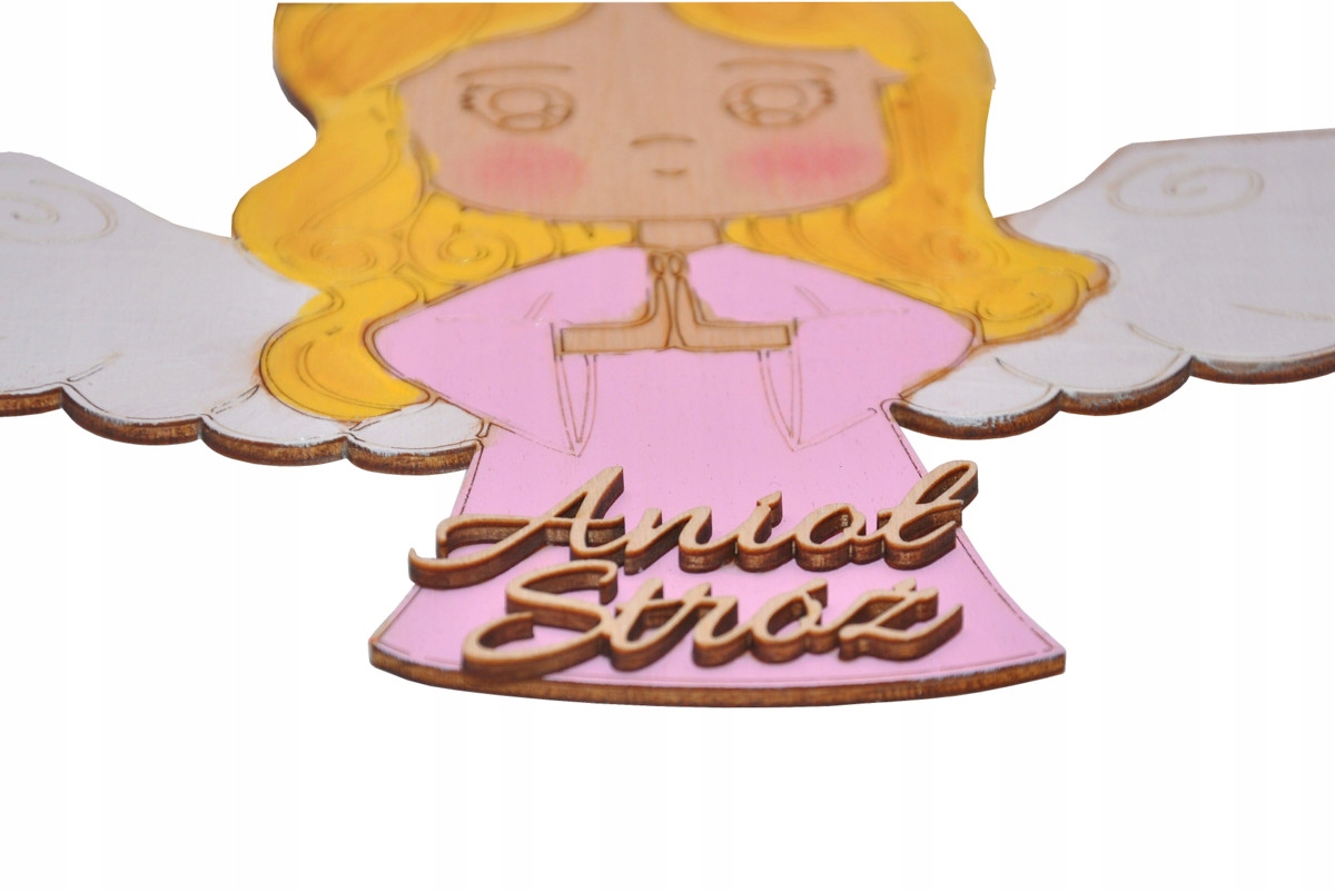 Ангел розписаний акриловими фарбами вручну , покритий акриловим лаком - напис на фанері - декоративний лазерний шрифт - Ангел охоронець