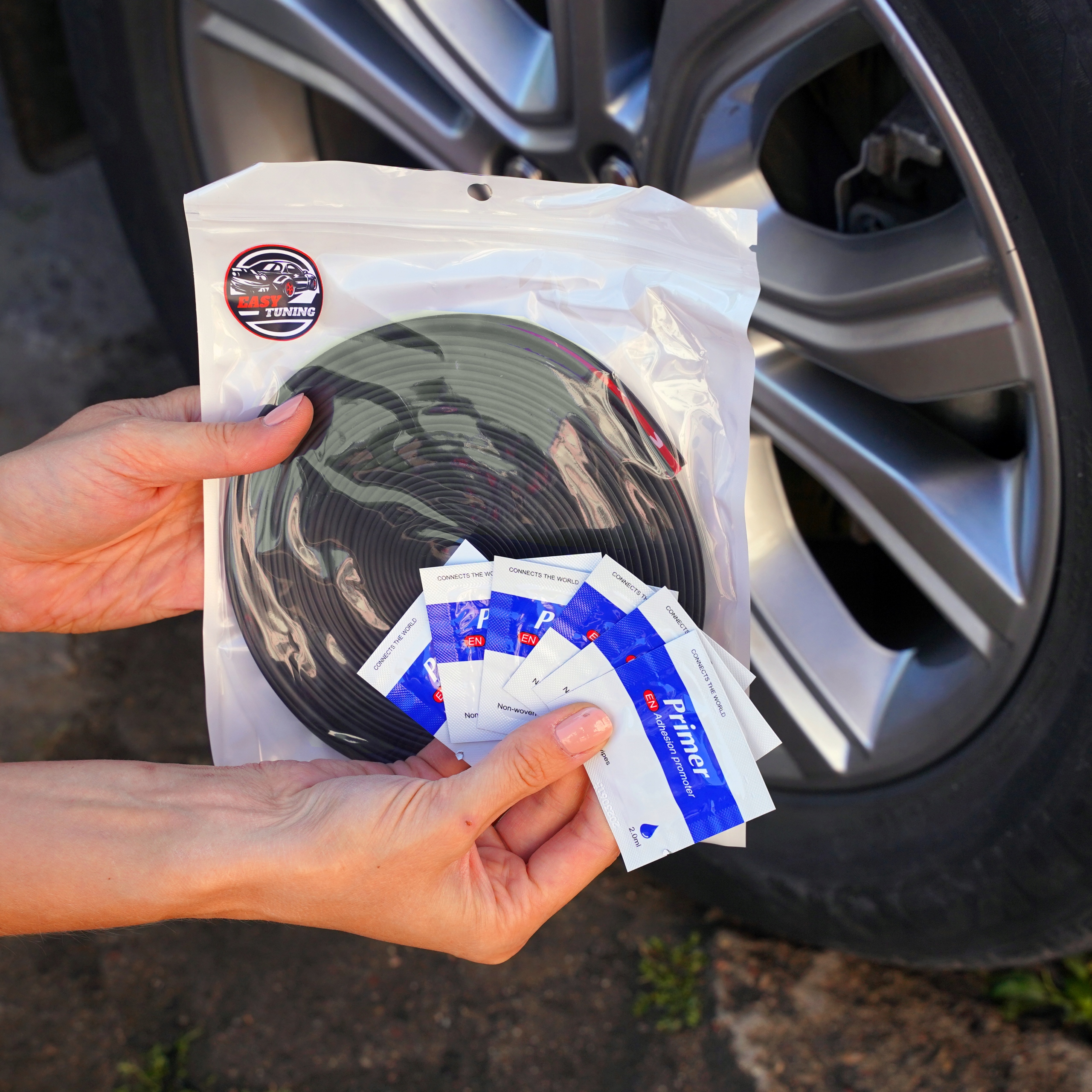 8-метрового рулону з клеєм 3М вистачить, щоб прикрасити близько 5 коліс 16 або 17 дюймів або 4 більших. Декоративна стрічка легко підлаштовується під форму елемента і добре тримається, залишаючись на ободі тривалий час.
