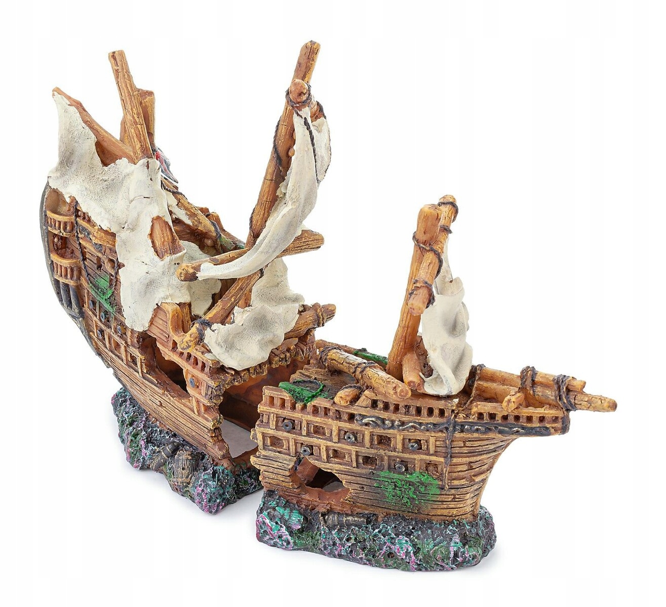 Вітрильник виготовлено з міцного та безпечного для риб пластику. Матеріал водонепроникний. Точність виконання, яскраві кольори та увага до найдрібніших деталей роблять прикрасу ідеальною імітацією корабля. Прикраса стійке і добре тримається на будь-якій поверхні бака. Затонулий корабель розділений на дві частини, що робить можливості його обстановки та облаштування ще більшими.