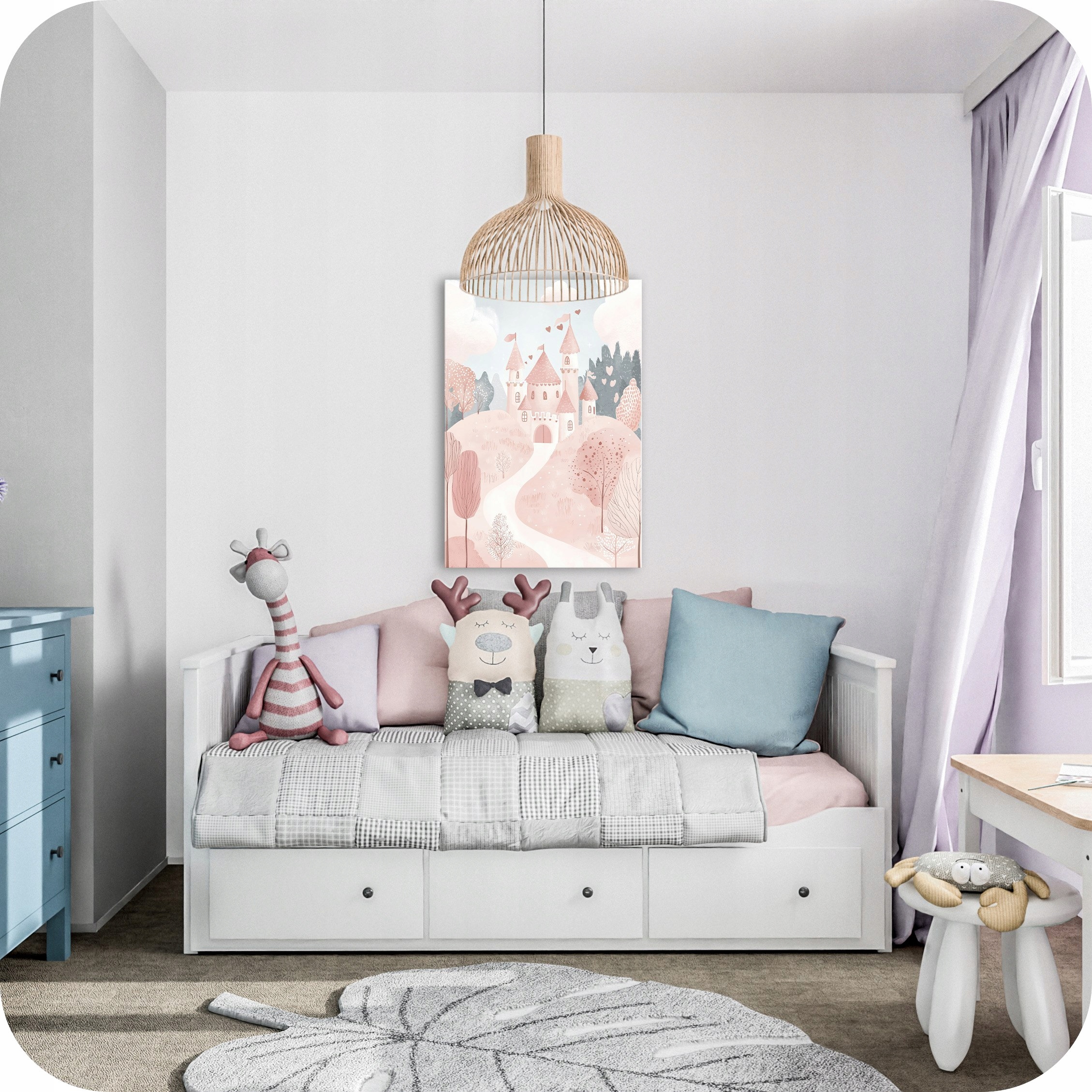 ДЕКОРАЦІЇ ДИТЯЧОЇ КІМНАТИ ДІВЧАТКИ КАРТИНА ЗАМОК 70х50 СМ