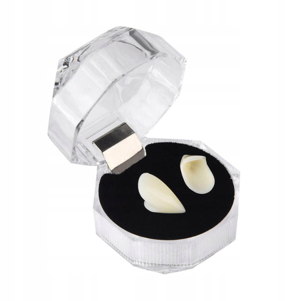 Кожне ікло ділиться на два зуби. Вони можуть підходити до іклів та/або різців або нижніх зубів. Швидко, легко, зручно і цілком реалістично. Чохли для іклів природного кольору блискучі, жорсткі та гарно профільовані, щоб чудово виглядати в будь-якому роті. Ідеальні розіграші на Хелловін і банальний подарунок.