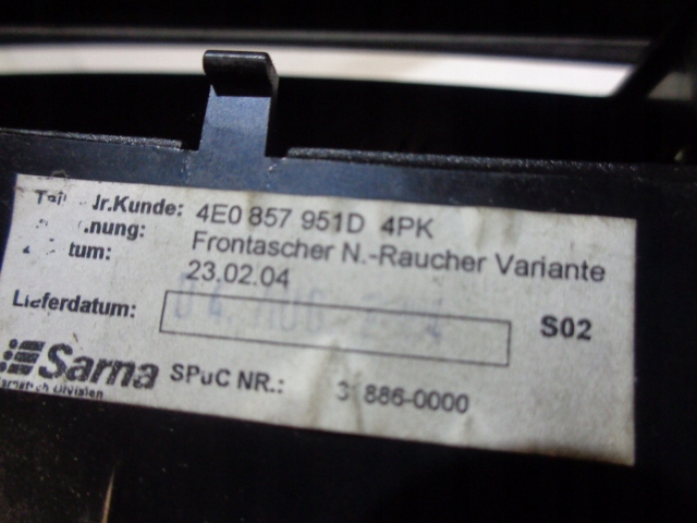 Приобретая «ДЕКОР ПОПІЛЬНИЦІ ДЕКОР AUDI A8 D3 03-10 4E0857951D» данный товар из каталога «Пепельницы» вы можете быть уверены, что после оформления заказа, доставки в Украину, вы получите именно то, что заказывали, в оговоренные сроки и европейского качества.