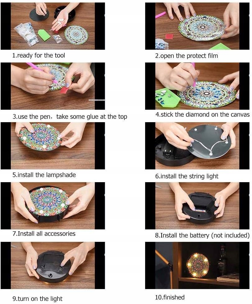 Специфікація: Матеріал: алмазний малюнок зі світлом + смола, спеціальна форма