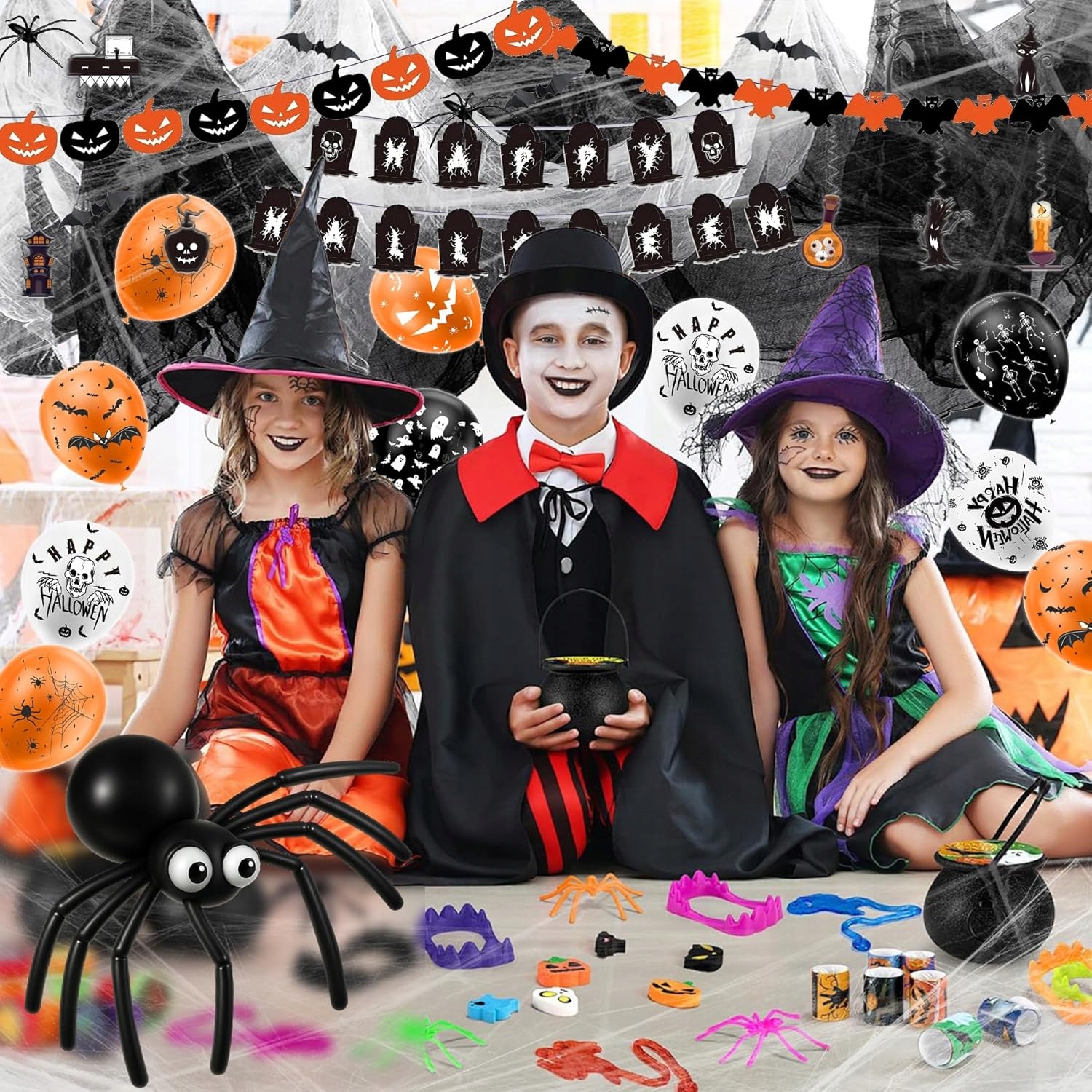 НАБІР ДЕКОРАЦІЙ ГІРЛЯНДИ НА ХЕЛОВІН СКЕЛЕТИ ПОВІТРЯНІ КУЛІ ПАВУКИ КАЖАНИ