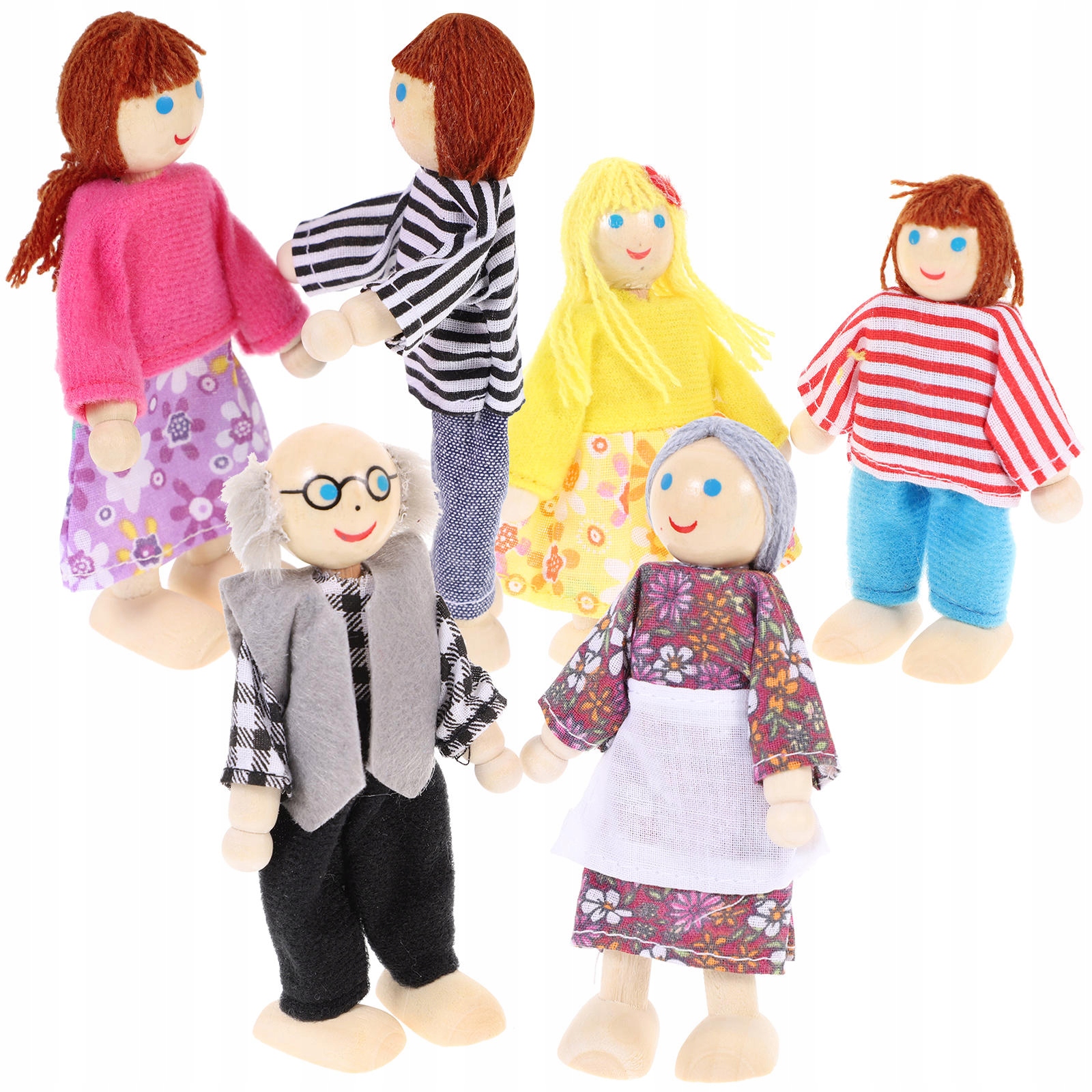 ✅Набір з 6 красивих ляльок для дітей. Він виготовлений з ретельно відшліфованої деревини з безпечною камерою та гладкою поверхнею, що підходить для дітей. Кінцівки гнучкі. Це ідеальний подарунок для дитячого будиночка. Крім того, сімейні ляльки також служать декором для дому.