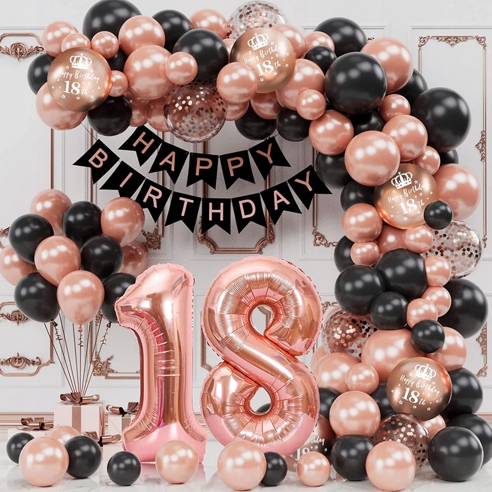 ДЕКОРАЦІЯ 18-ГО ДНЯ НАРОДЖЕННЯ ПОВІТРЯНА КУЛЯ ГІРЛЯНДА ЧОРНА ТРОЯНДОВА ЗОЛОТА НАБІР ДНЯ НАРОДЖЕННЯ