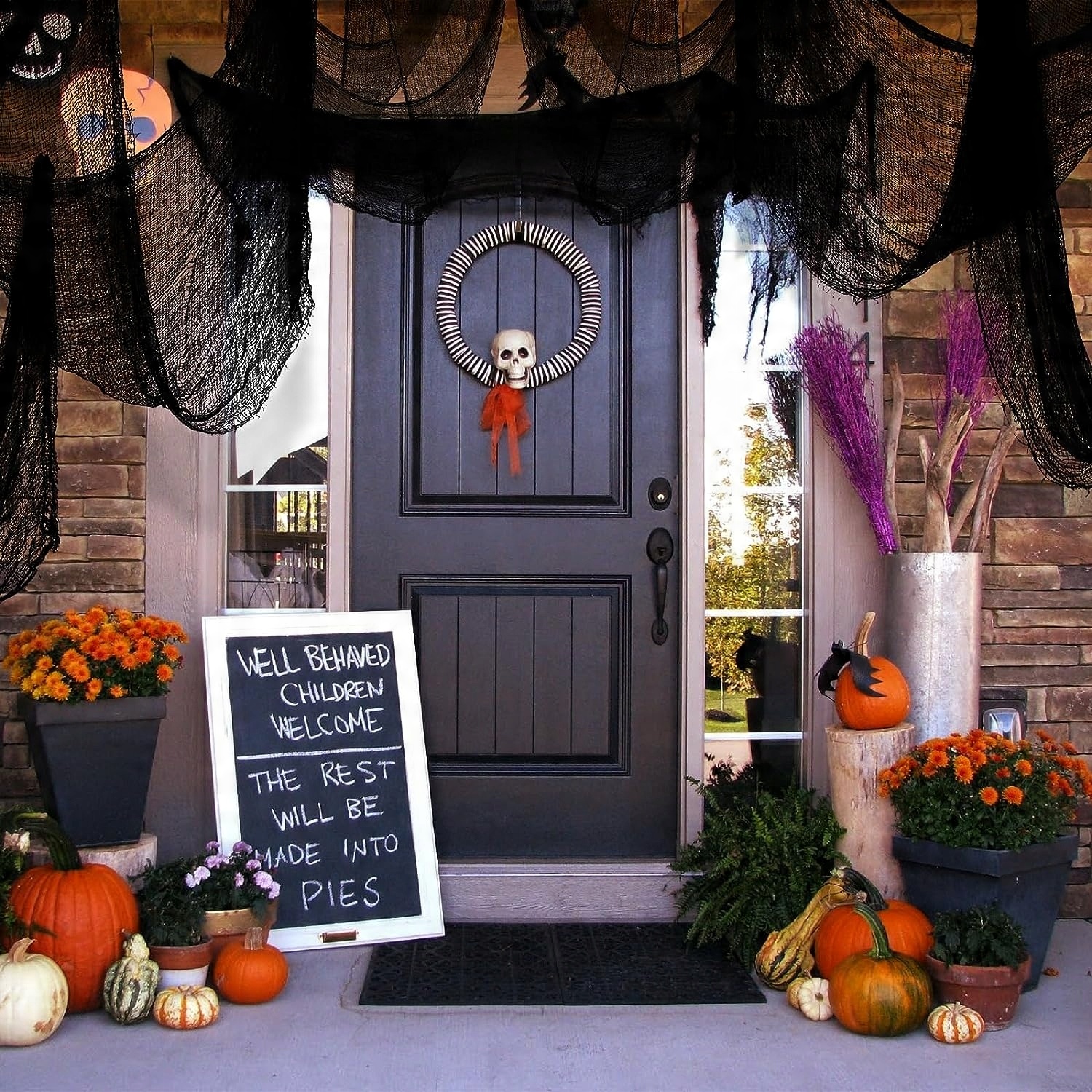 👻👻【Застосування】:найкраща атмосфера для страшних пейзажів і кривавих фотографій чи картин, супер великий чорний шарф для декоративного використання на вечірці на Хелловін, у дворі, дверях, вікнах, навісах, гілках, воротах тощо.