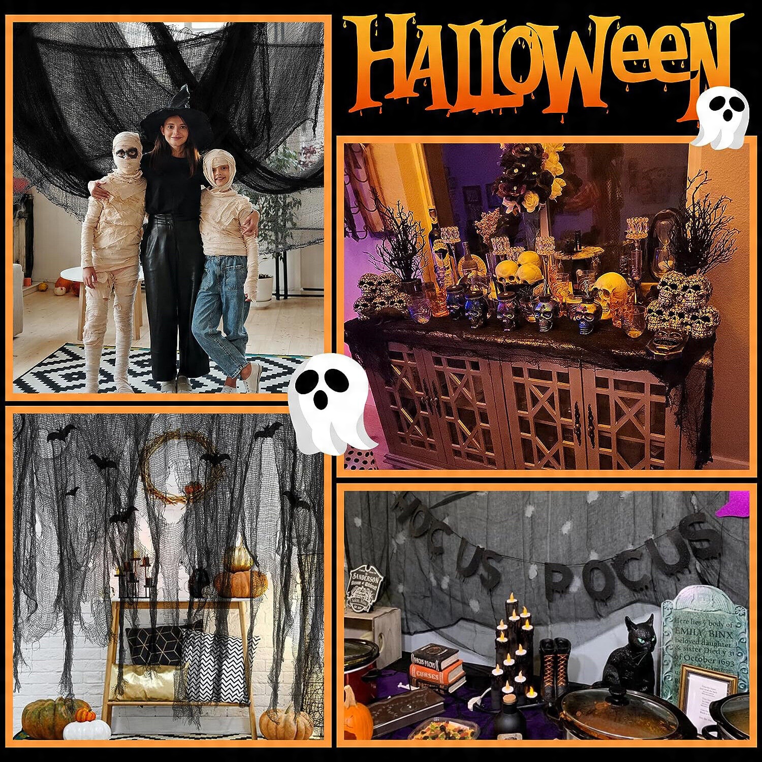 👻👻【Сітка на Хеллоуїн суперрозміру】: чорна марля, довжина 5 м і ширина 2,15 м як прикраса для вечірки на Хеллоуїн.
