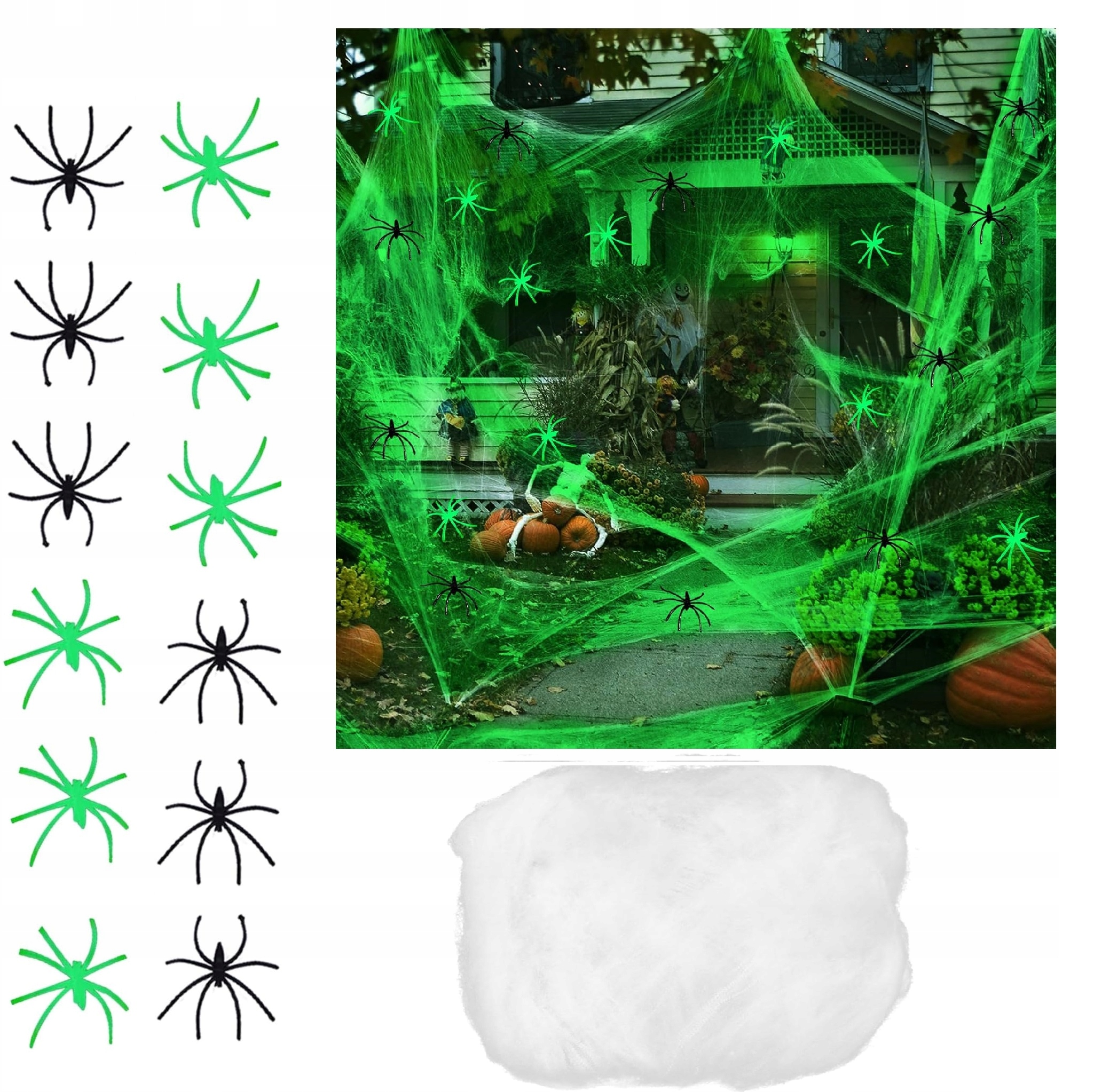 - Набір з 20 павуків b>: У набір входить 20 штучних павуків, яких можна вільно розмістити на павутині, створюючи ще більш жахливий ефект.