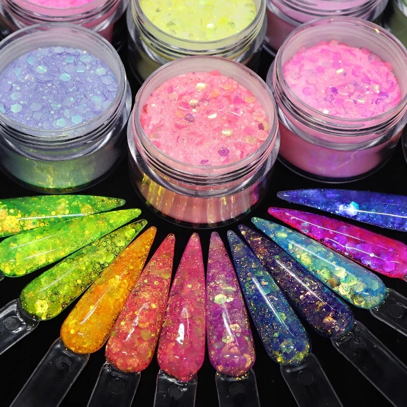Поєднання чудових прикрас для нігтів та ефектів: пил, блискітки, лусочки, метелики, голографічні ефекти та багато іншого!
