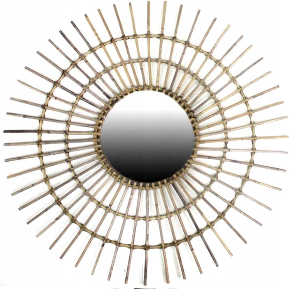 Чудовий настінний декор із мотивом сонця з ротанга натурального кольору. Посередині має дзеркало. Він може дуже сучасно прикрасити кімнату, надавши вашій кімнаті оригінальності. А завдяки своїм розмірам він буде дуже помітним доповненням. Ідеальний варіант для любителів незвичайних прикрас.