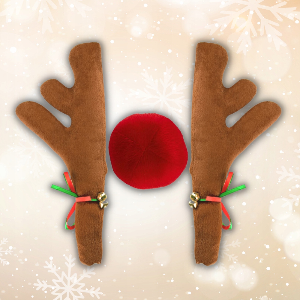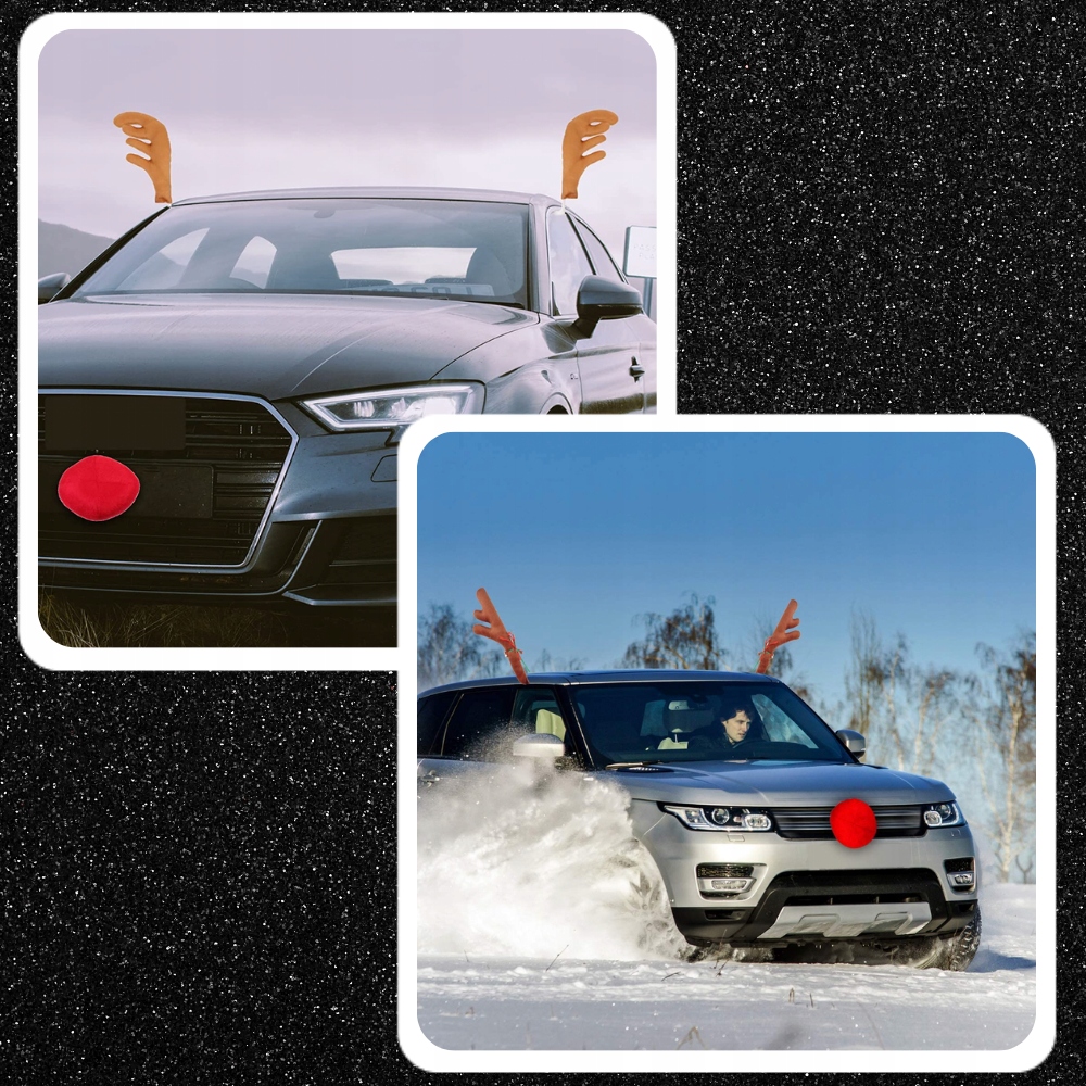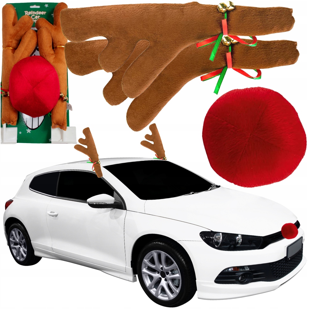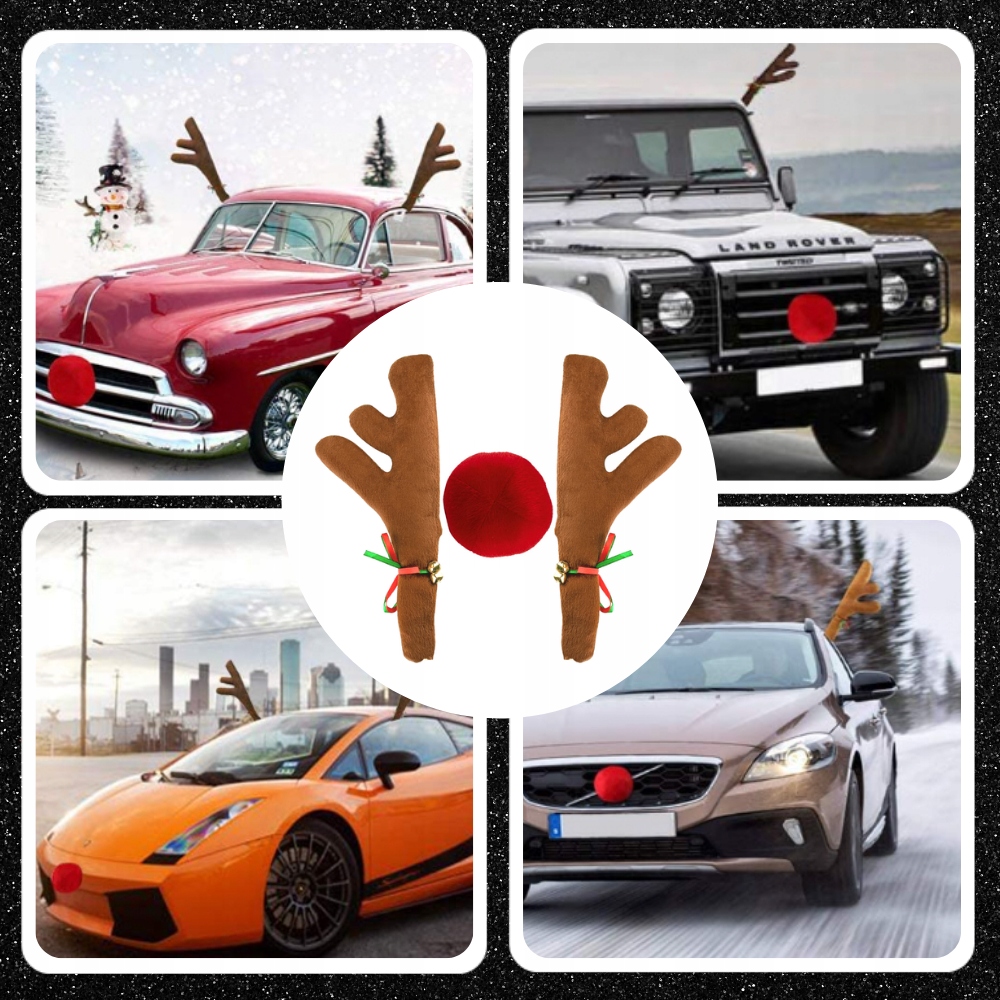 DEKORACJA OZDOBA ŚWIĄTECZNA NA SAMOCHÓD AUTO ZESTAW ROGI RENIFERA + NOS