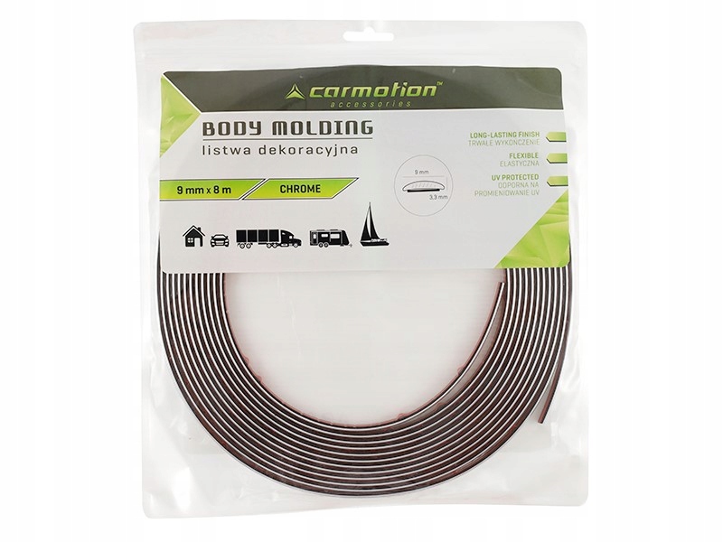 Декоративна, захисна, хромована планка, 9мм, 8м