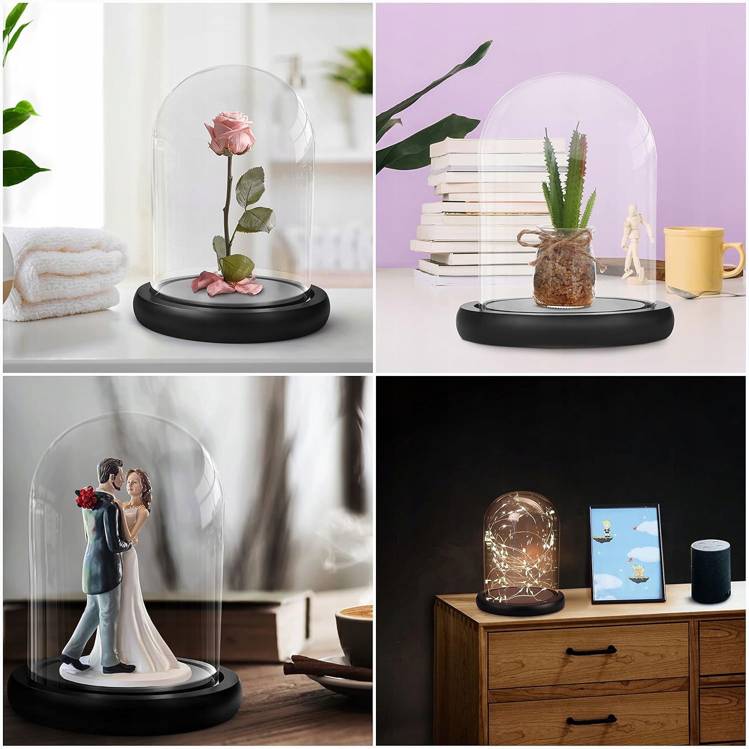 - Сучасне чисте скло купола: наші скляні куполи прозорі кришталеві, тому ви можете точно побачити, що саме в їх середині. Наш скляний дзвін з ногою не тільки красиво розкриває цінні статуетки колекціонера, але й захищає їх від пилу та бруду. Просто протріть верхню частину скла, а не ускладнюючи очищення кожної фігури. Помістіть струнні світильники або акумулятори посередині і подивіться, як вони відображаються всередині склянки.