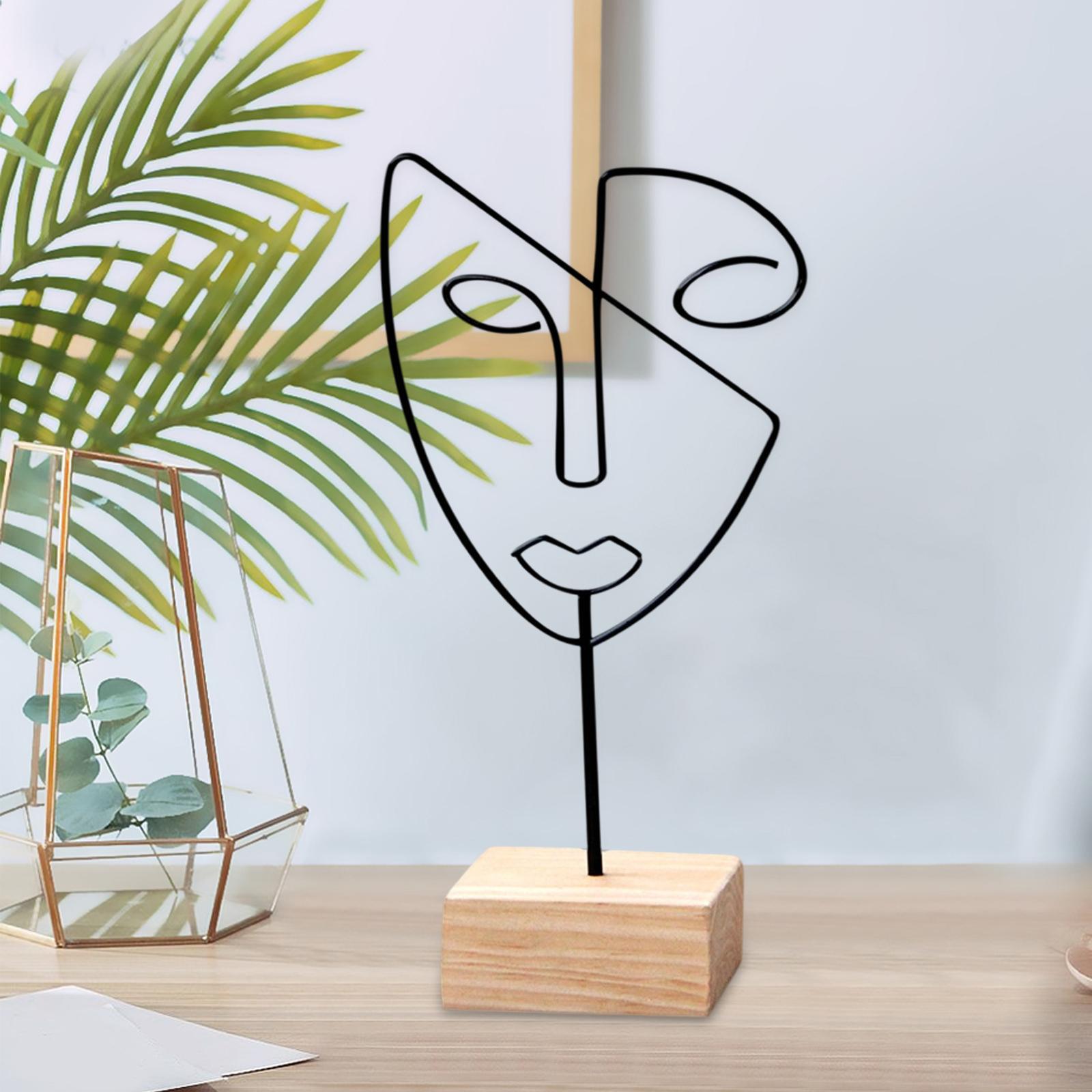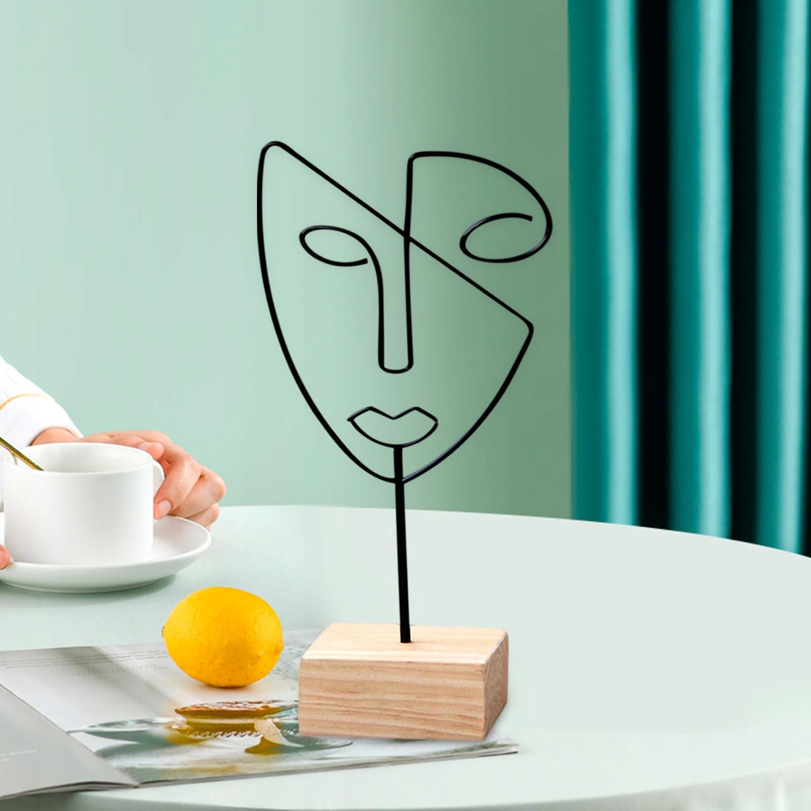 Абстрактна контурна скульптура обличчя: ця абстрактна металева фігура обличчя виготовлена з високоякісного заліза на дерев’яній основі, міцна та проста.