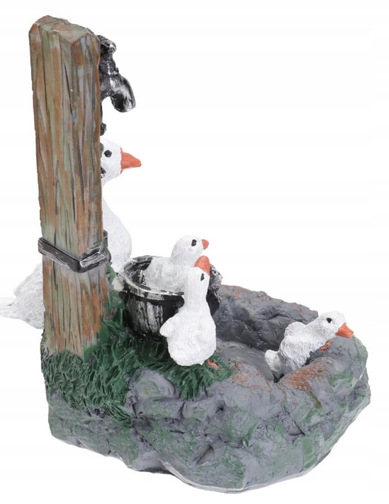 FIGURKA OZDOBNA DO OGRODU DOMU GĘSI W FONTANNIE