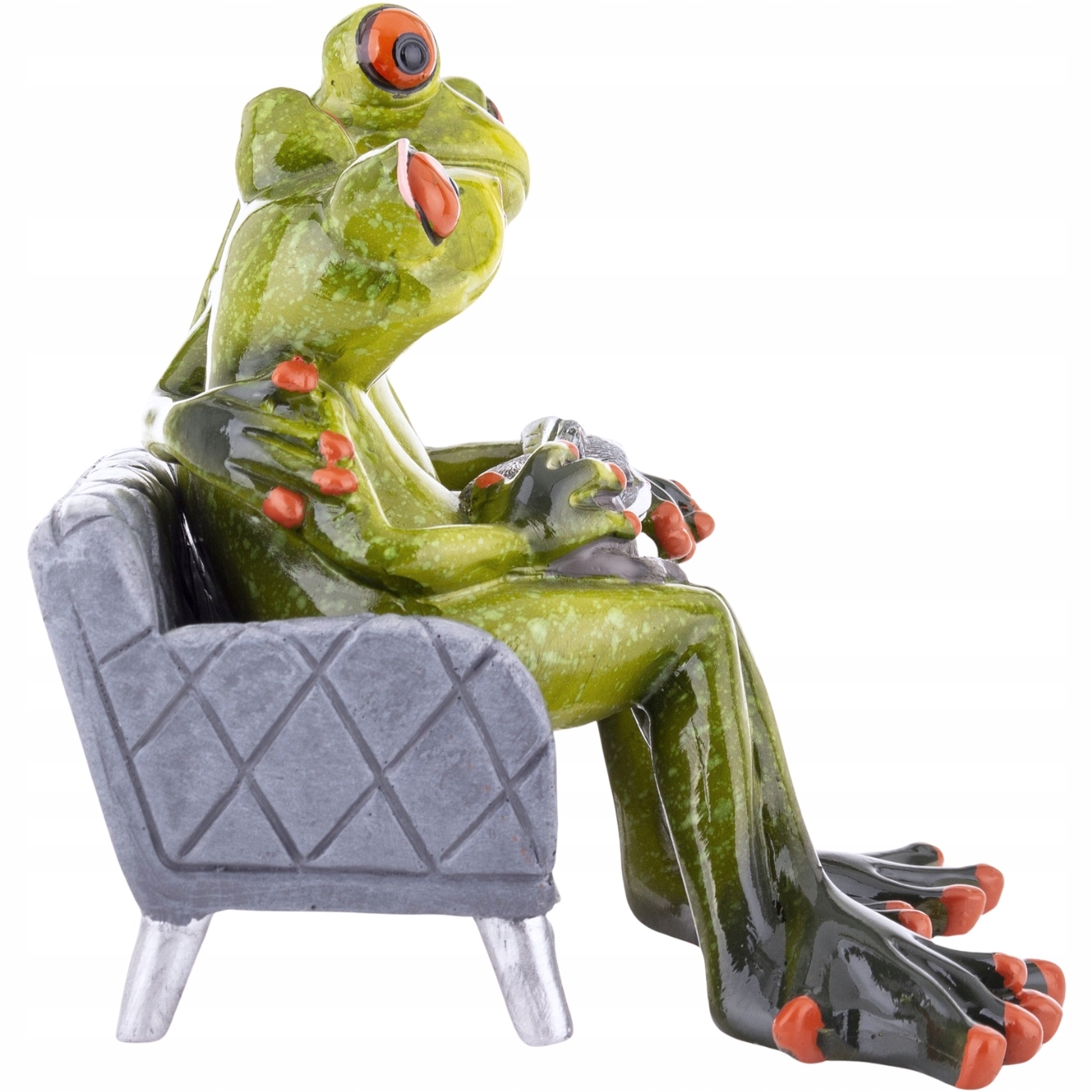 Декоративна Фігурка Жаба 12 х 10,5 х 12 см - Дві Жаби з КІШКОЮ На дивані