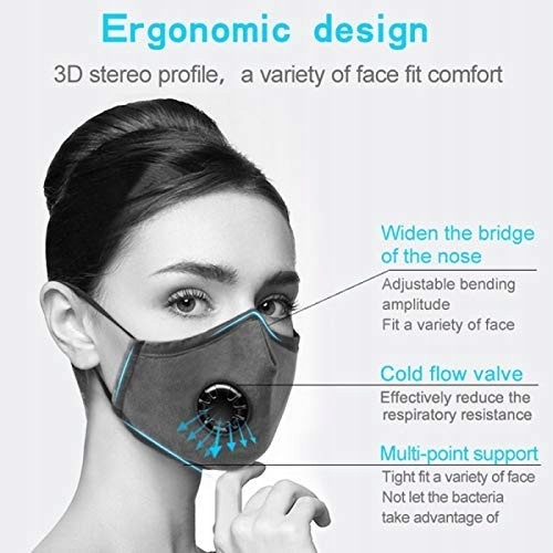 Змінний фільтр HEPA PM2.5 забезпечує додатковий рівень захисту. Фільтри якісні - п'ятишарові. Одного фільтра вистачає приблизно на 30 годин безперервного носіння. Цей фільтр має 5 шарів, включаючи протипиловий, протипиловий та активоване вугілля. Фільтрація 98-99%. Фільтри можна швидко й легко замінити.