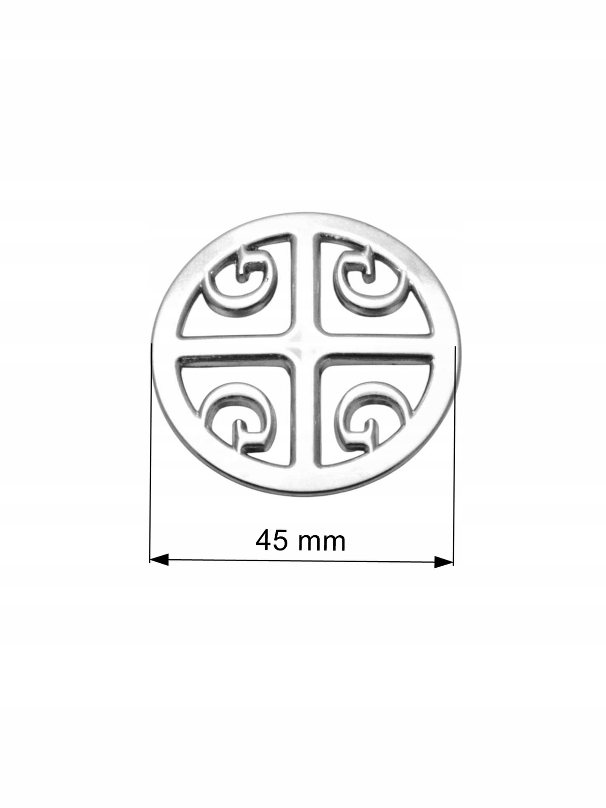 діаметр: 45 мм Матеріал: Метал з високою тривалістю Колір: срібний блиск Встановлення: Два кріпильні отвори для легкої установки