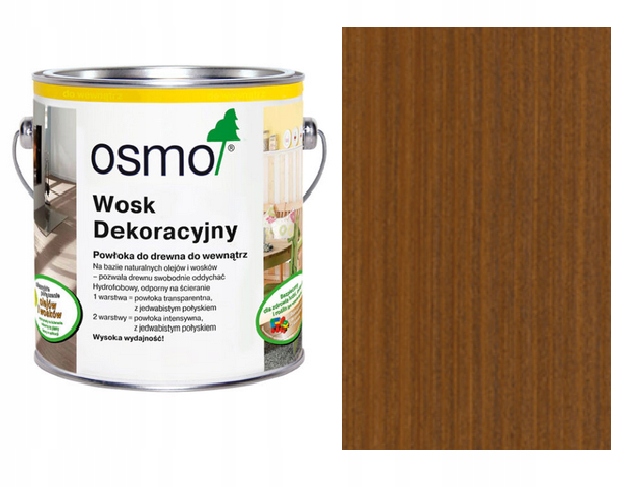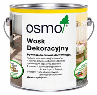 Osmo Decorative Wax є гідрофобним, стійким до стирання та бруду. Структура деревини, покритої нею, залишається добре помітною. У порівнянні з традиційними лаками, вміст рослинних інгредієнтів дозволяє отримати рівномірний колір і гармонійне покриття поверхні.