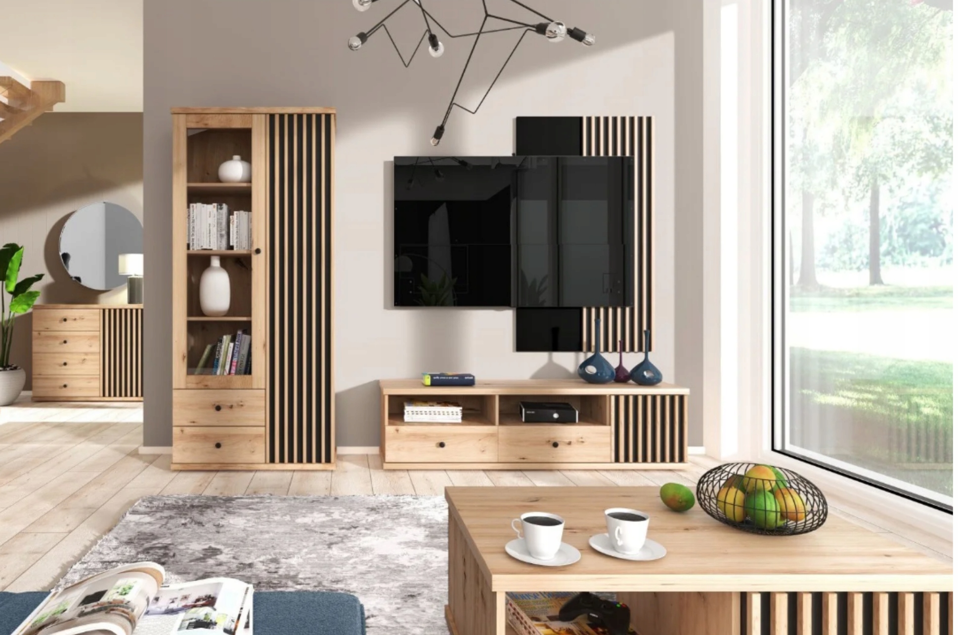 Панель з ламелями для підвішування, наприклад, за телевізором у вітальні. Поєднання чорного кольору зі світлими ламелями - сучасне рішення для інтер'єру. Ідеальне рішення, яке додасть вашому інтер'єрукласу та характеру.