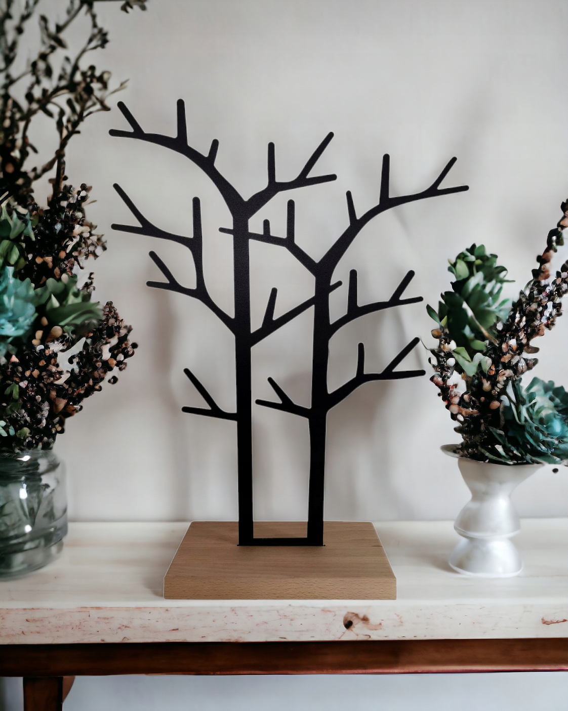 СТИЛЬНА ПІДСТАВКА ДЛЯ ЮВЕЛІРНИХ ВИРОБІВ 32 СМ - ЧОРНИЙ МЕТАЛ + ДЕРЕВО