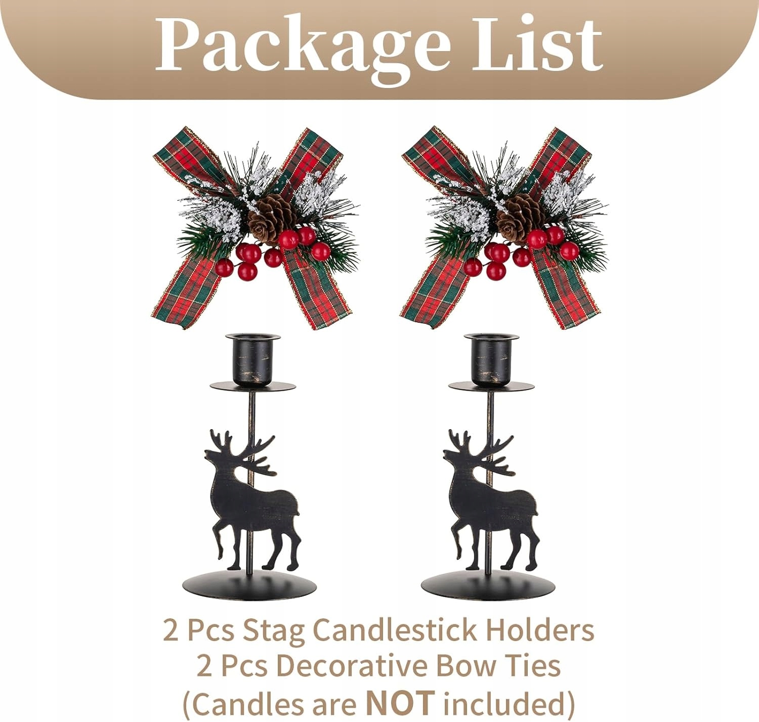 Різдвяні свічники Sziqiqi, чорні: свічники з оленями з різдвяним бантом, 2 шт., декоративні конічні свічники з оленями для центральної частини різдвяного столу, декорування камінної полиці