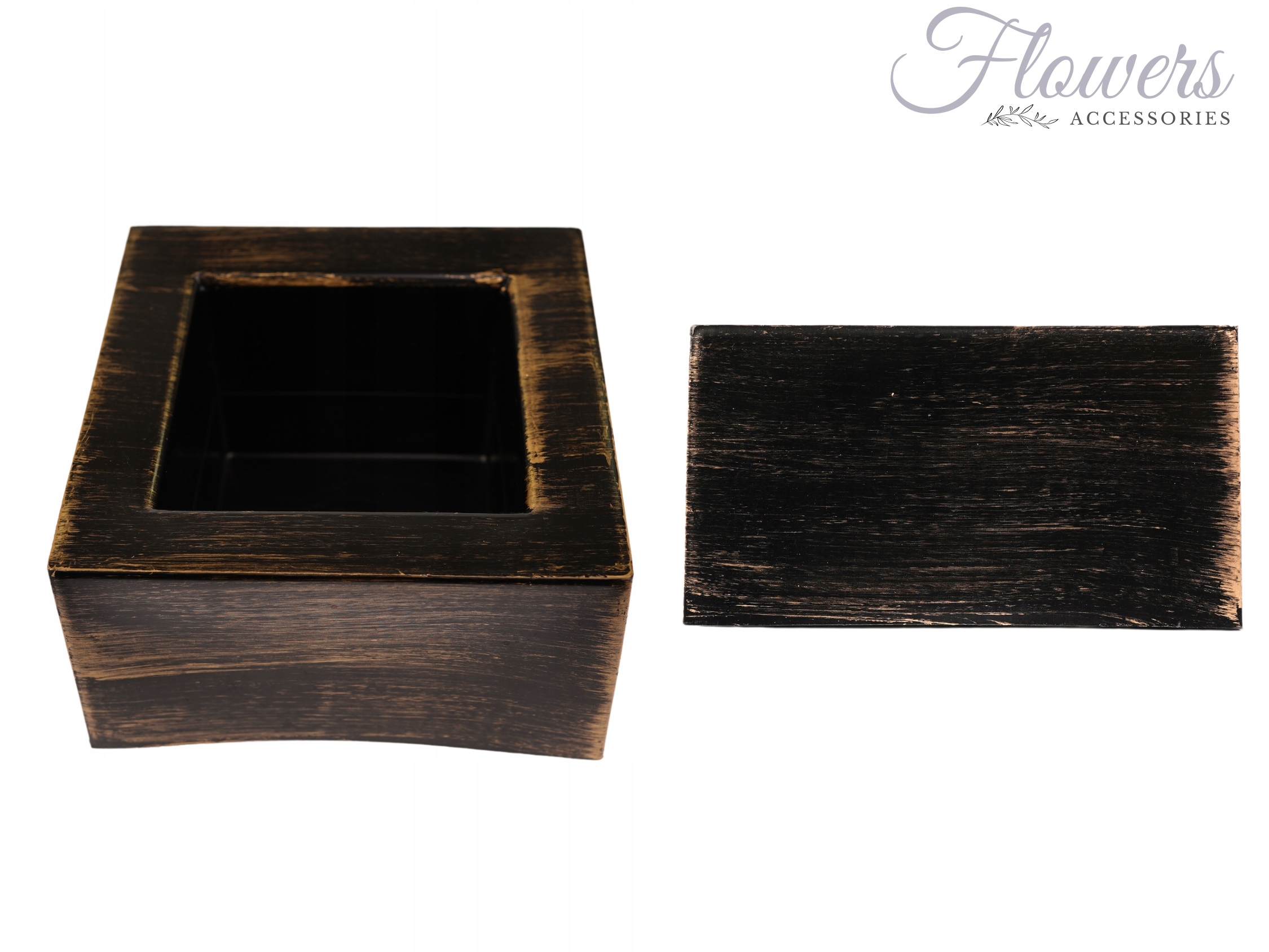 ☀️ СУЧАСНИЙ ГОРЩИК ДЛЯ КВІТКОВИХ КОМПОЗИЦІЙ - ОСНОВА ДЛЯ СЛІВ - ЧОРНО-ЗОЛОТИЙ - 15 см x 15 см b >