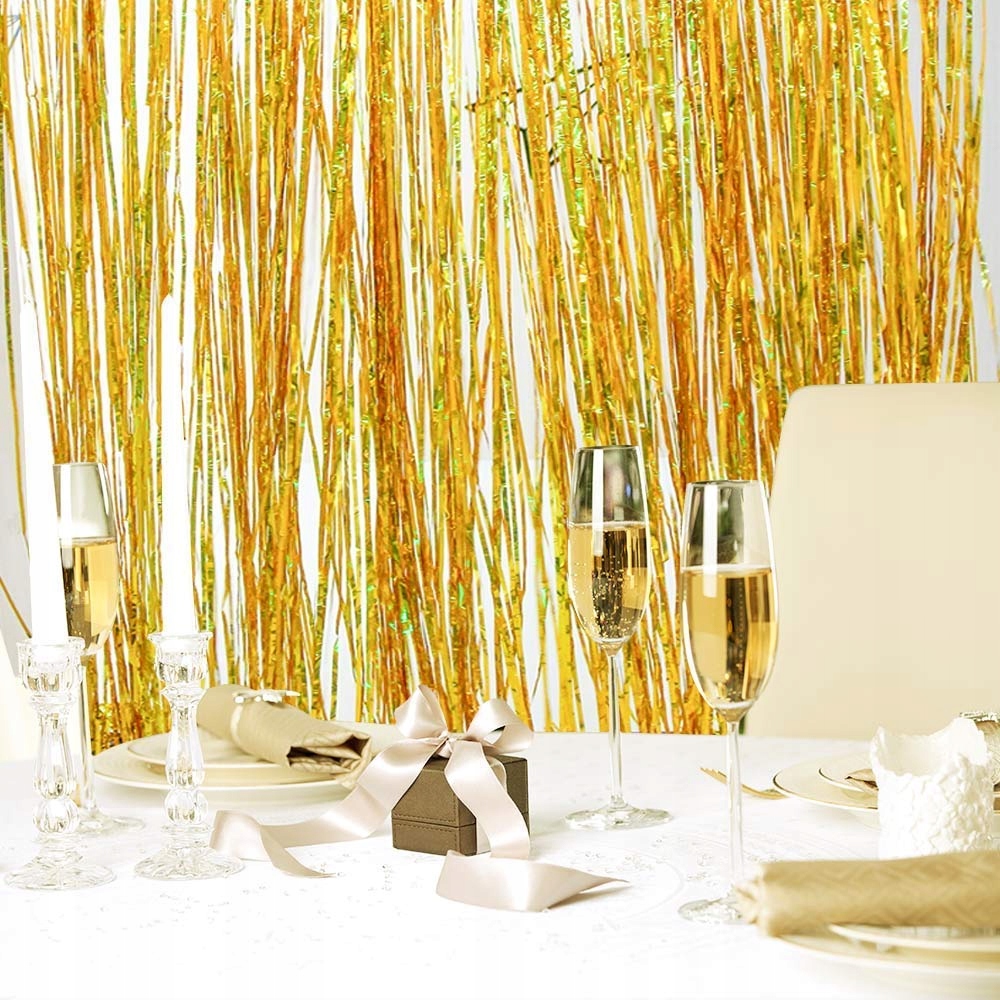 Декоративна пластикова завіса для дня народження настінна золота бахрома