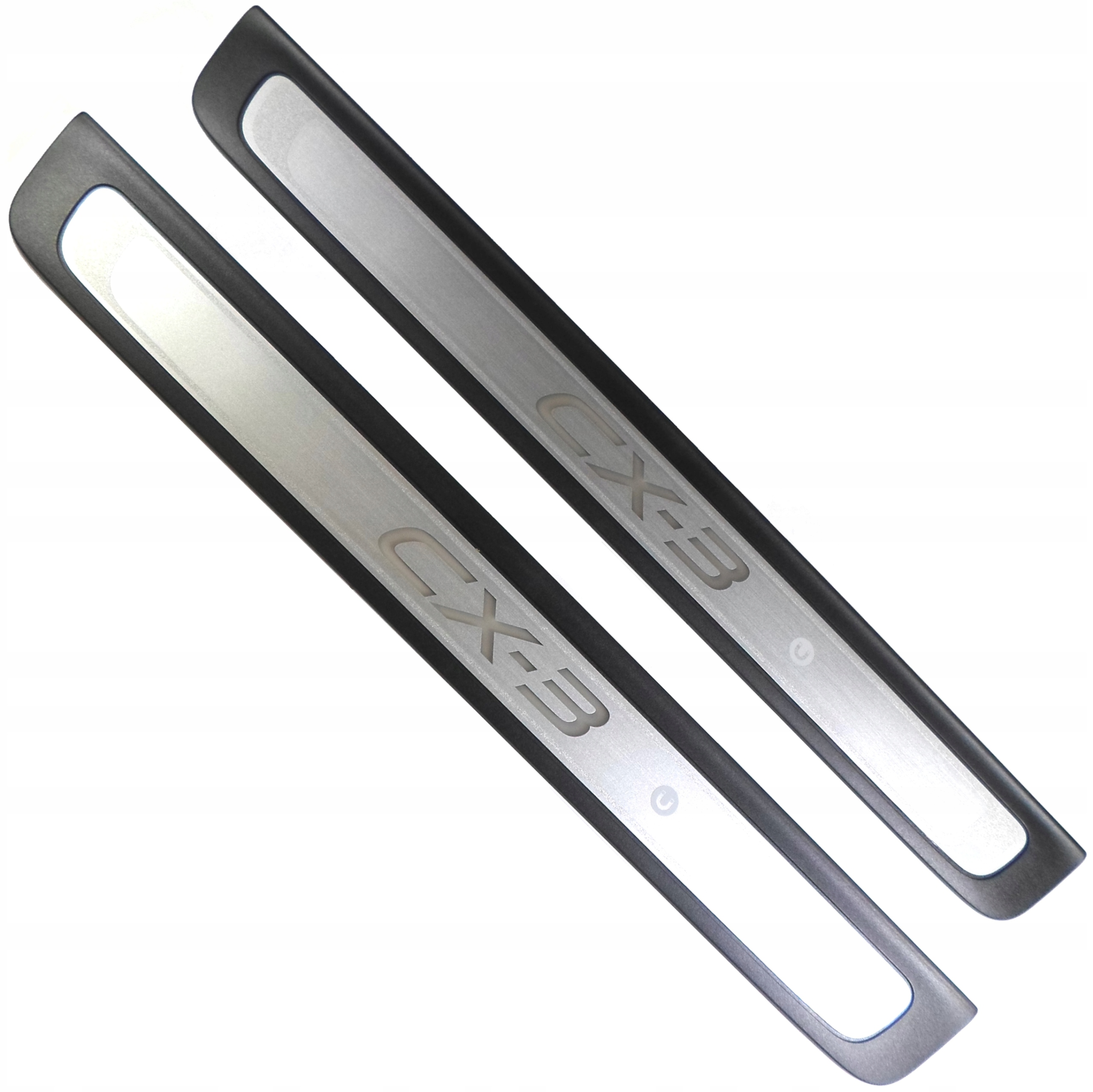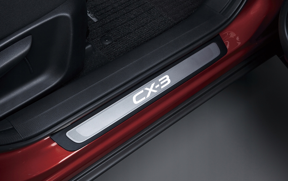 Оригінальні абсолютно нові декоративні накладки на пороги з підсвіченим логотипом CX-3 - набір з 2 штук (D10F-V1-370) з оригінальної колекції аксесуарів MAZDA, присвяченої автомобілям: