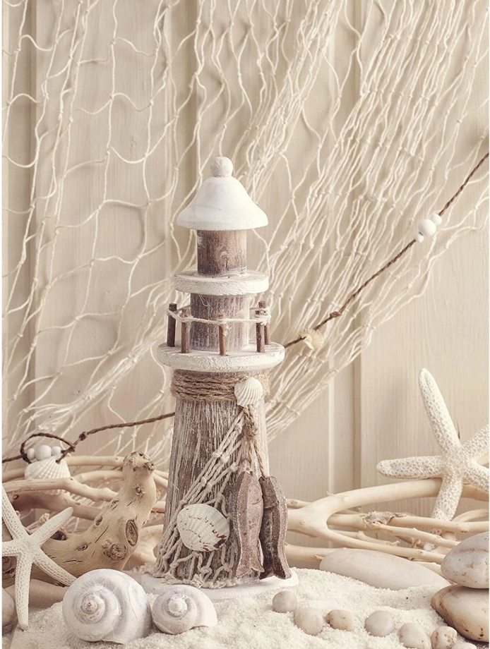 Рибальська сітка виготовлена з міцного матеріалу, який відображає автентичний вигляд традиційних мереж, що використовуються рибалками. Ним можна прикрасити стіну, вікно, меблі або інші елементи інтер'єру, надавши їм характерну морську атмосферу.