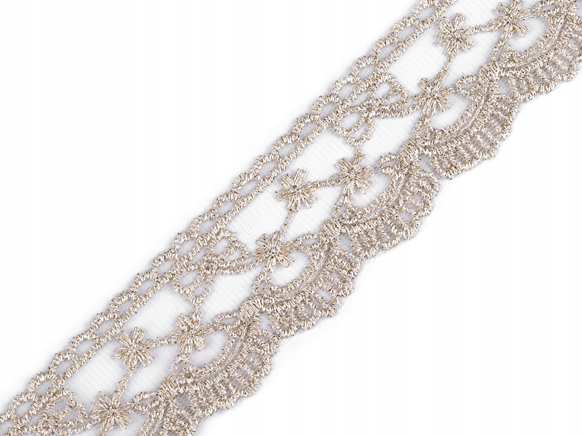 Монофільна стрічка прикрашена вишивкою люрексом. Ним можна прикрашати святкові та випускні сукні — можна використовувати для подолів, декольте тощо.