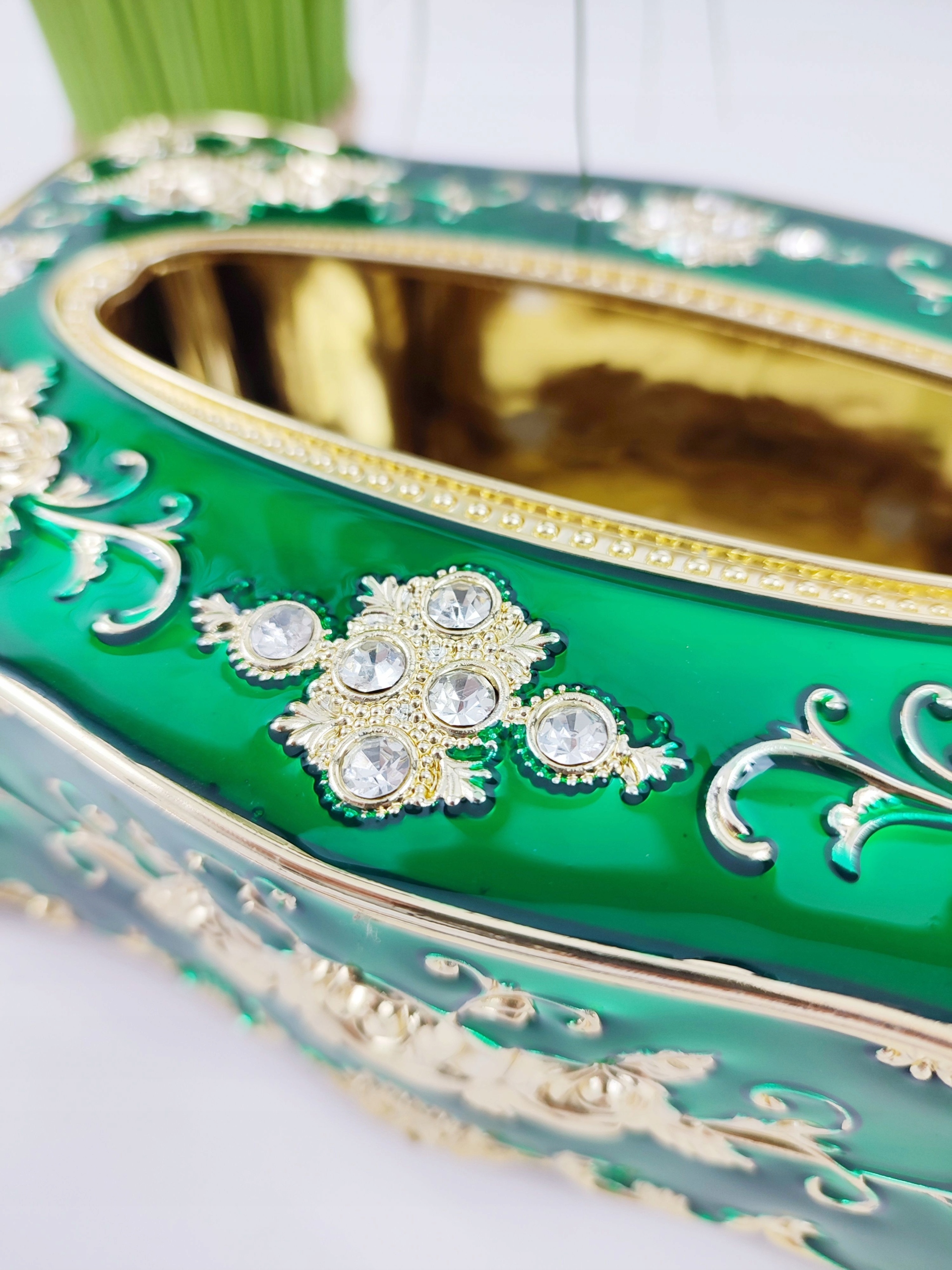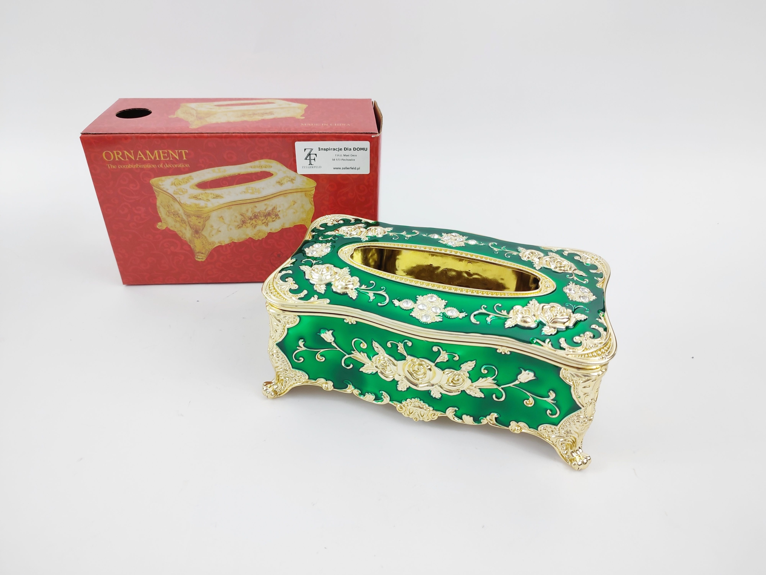 Елегантний контейнер для декоративних серветок. Оптимальні розміри дозволять зберігати велику кількість серветок, тому вам не доведеться турбуватися про часте наповнення контейнера. Коробка має зручний магнітний отвір і вирізаний отвір, через який можна легко вийняти серветки, не ризикуючи порвати. Додатковим елементом декору є мотив троянди та декоративні стрази. Ідеально підходить для будь-якої кухні.