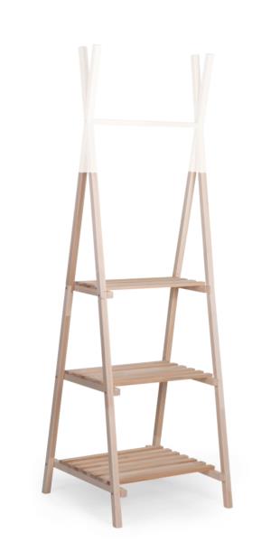 Велика практична вішалка для одягу та аксесуарів у формі тіпі. Має 3 полиці і штангу для підвішування одягу. На ньому можна розмістити не тільки текстиль, а й аксесуари та дитячі іграшки. Завдяки універсальним кольорам впишеться в будь-який інтер'єр.