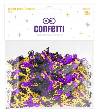 Готуйтеся до найзагадковішої ночі року! Декоративне конфетті у формі ключа для виливання воску фіолетового, золотого та чорного кольорів - це не тільки прикраса, це ще й запрошення у світ магії, ворожіння та пророцтва.