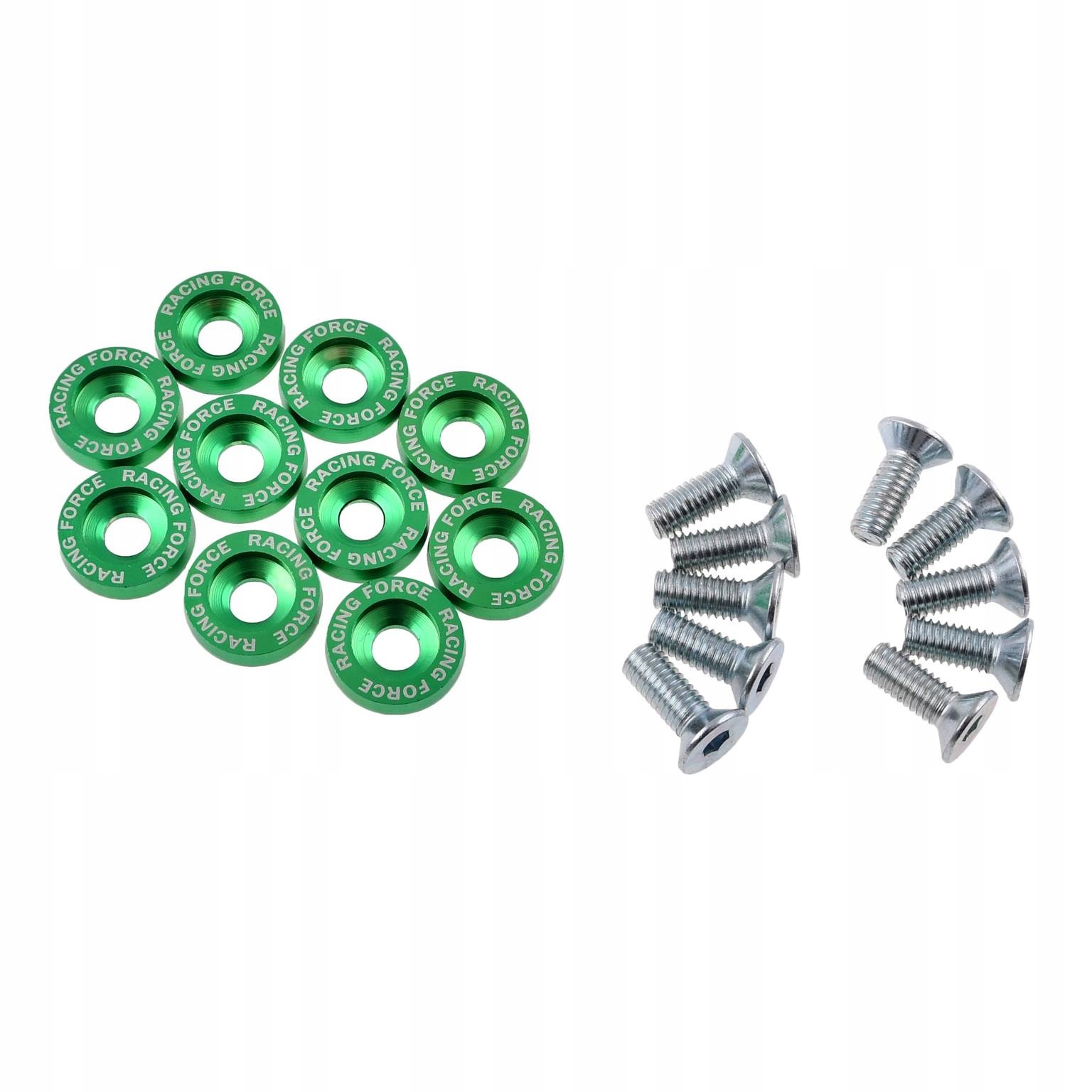 Декоративні шайби з анодованого алюмінію зі сталевими гвинтами M6 Racing Force. Продукт дуже хорошої якості.
