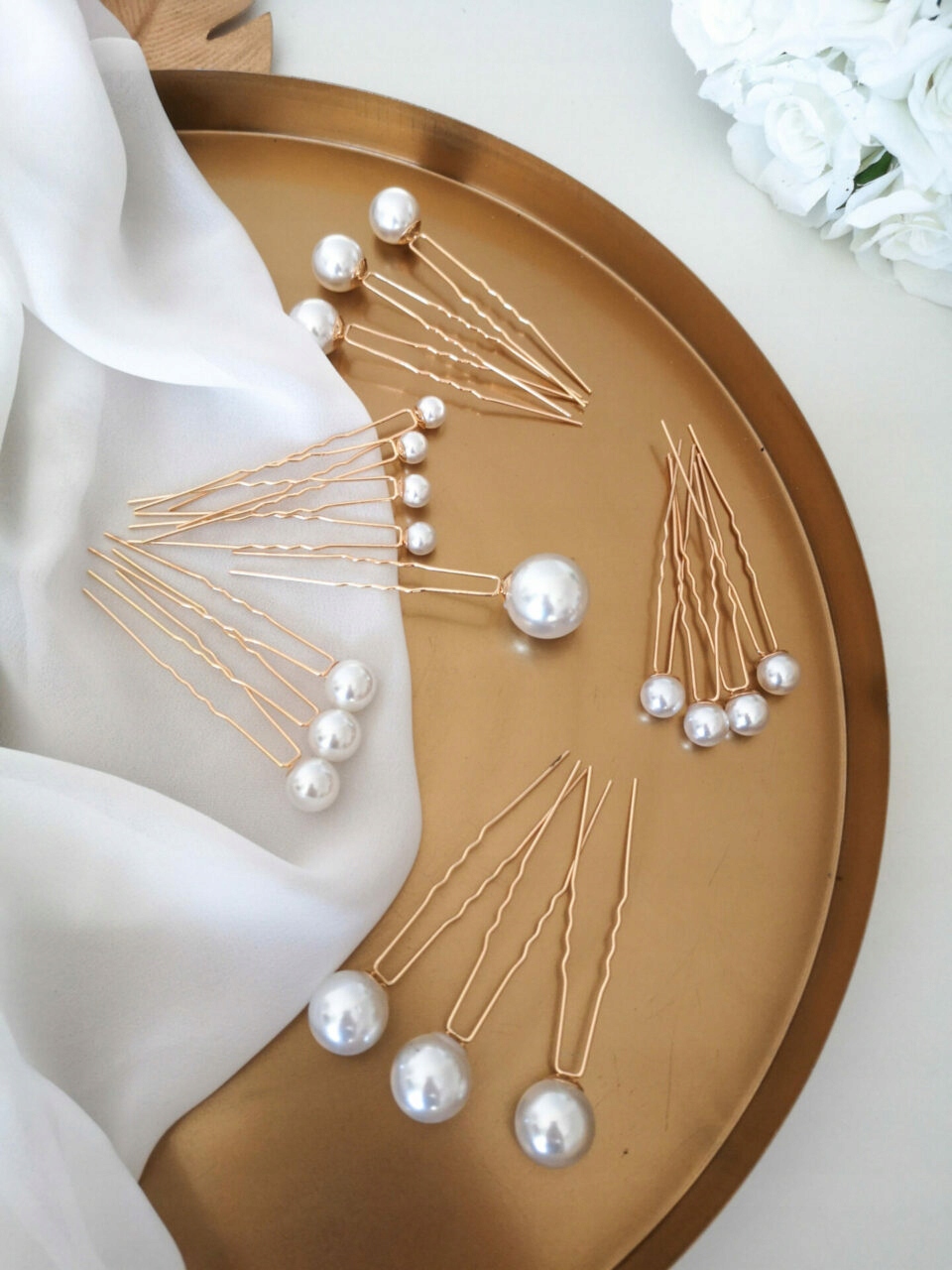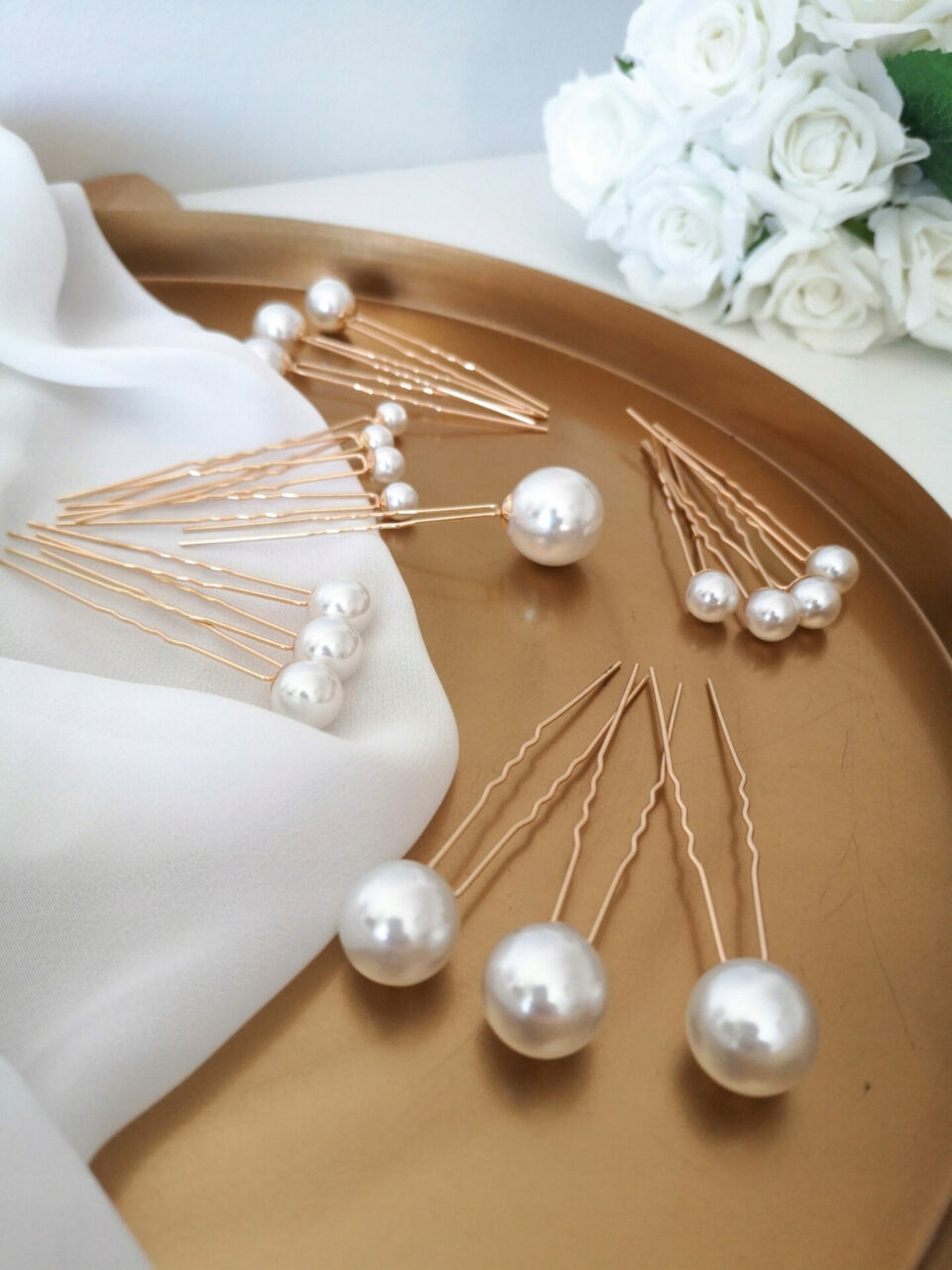З набором заколок з перлами ви можете створювати різноманітні весільні стилі. У набір входять шпильки з 5 різними розмірами перлин, завдяки чому вони ідеально підійдуть до будь-якої зачіски. Розкидані або розташовані впорядковано, вони завжди виглядають елегантно та позачасово. Перли чудово поєднуються як із сучасними стилями наречених, так і з класичними або вінтажними.