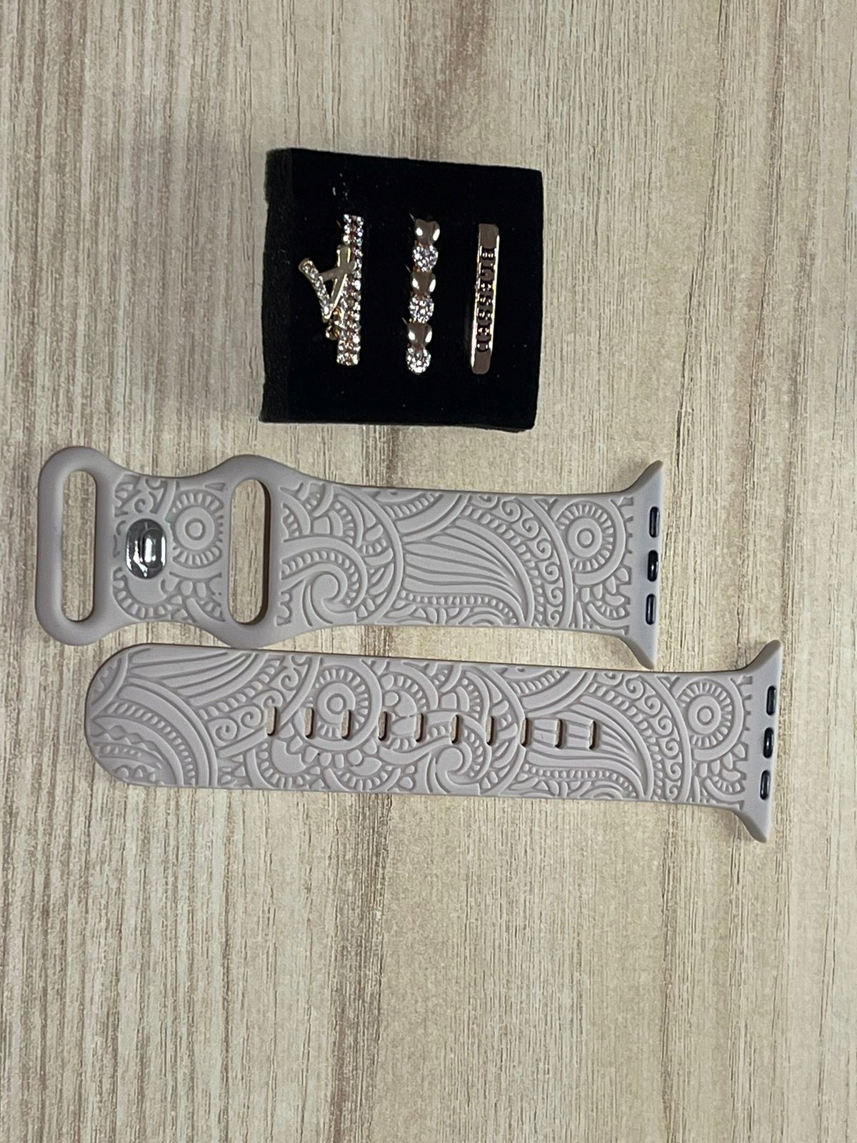 декоративний ремінь, сумісний з charm Apple Watch 42 мм / 44 мм / 45 мм / 49 мм парку, вигравірованою у стилі бохо, силікону, запасного ремінця для Iwatch 9, 8, 7, Se, 6, 5, 3, 2, 1