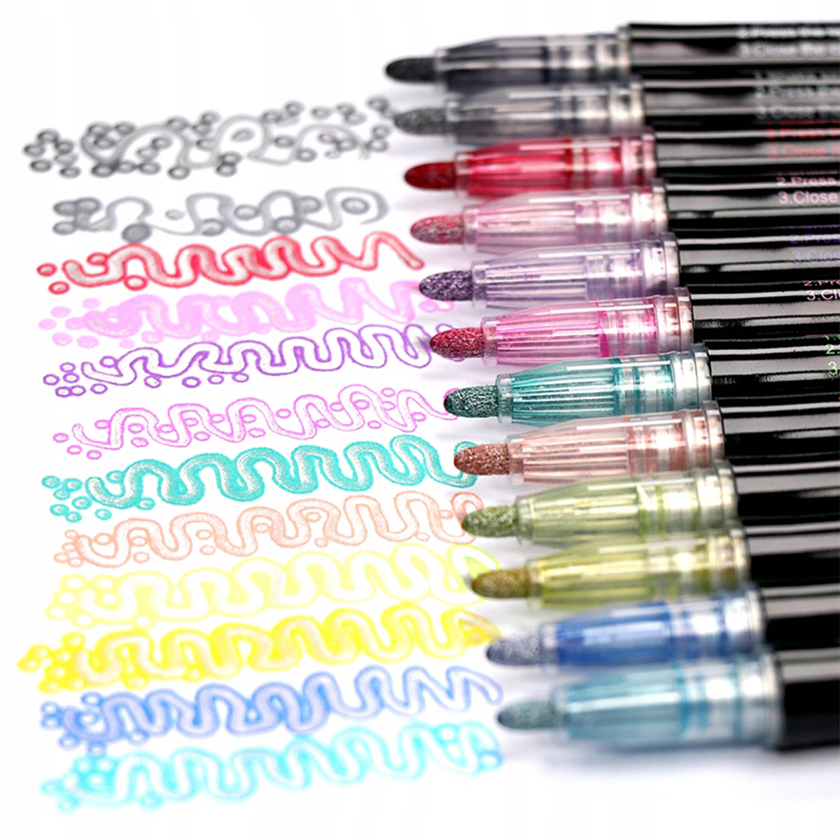 🎨 - Блискучі маркери YOUKUKE доступні в 12 унікальних кольорах (опціонально) з чарівним ефектом подвійного контуру. Глянцеві чорнила дозволяють отримати яскраві кольори та додати блиску. Ідеально підходить для рукоділля та проектів DIY.