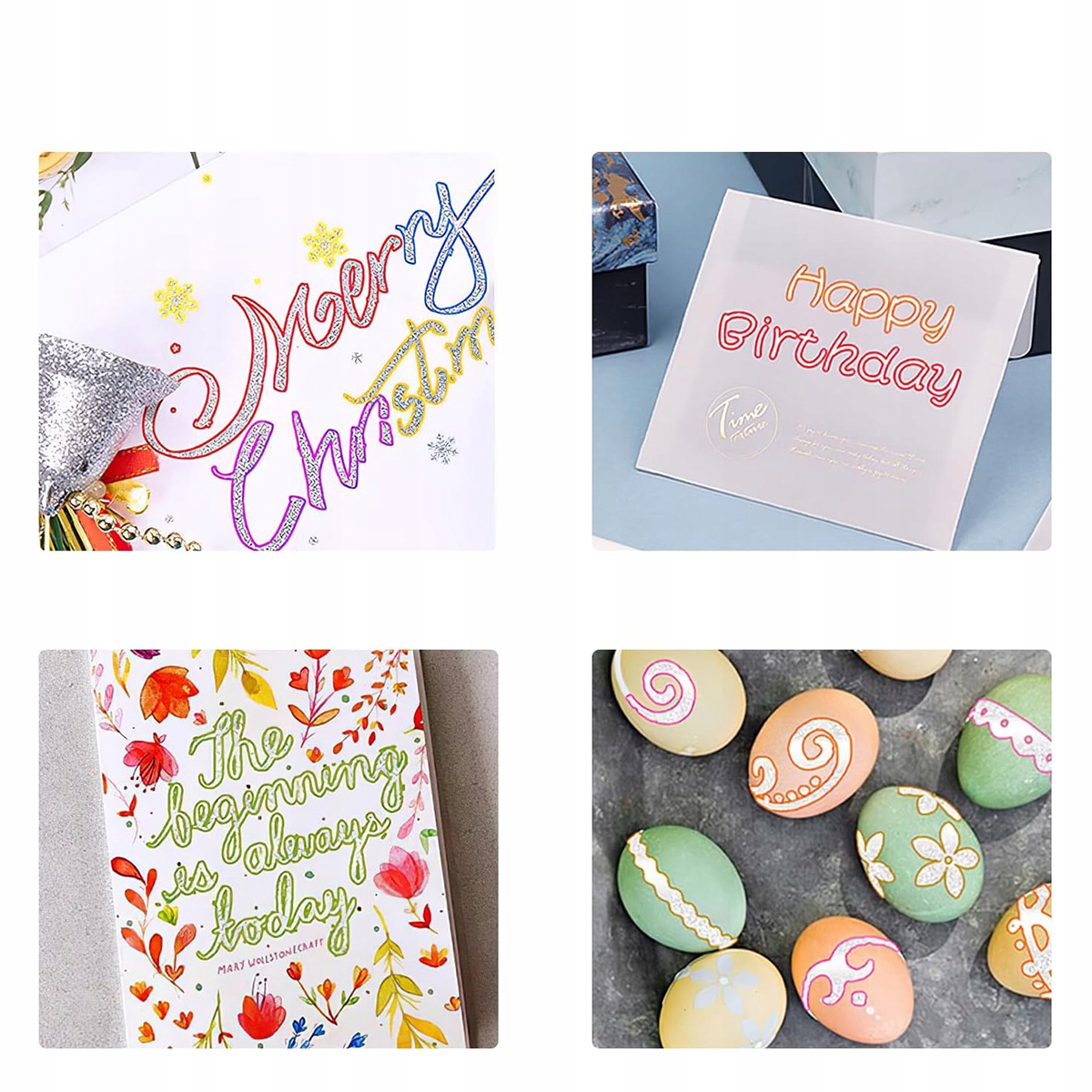 🎨. Ці блискучі ручки можна використовувати для малювання, малювання, письма та розфарбовування в різноманітних творчих заняттях. Вони також ідеально підходять для дитячих і дівчачих книжок з картинками, весільних листівок, фотоальбомів, скрапбукінгу та прикрас своїми руками. Він також підходить майже для всіх поверхонь, включаючи камінь, скло, дерево, пластик, метал, дошки та кераміку.