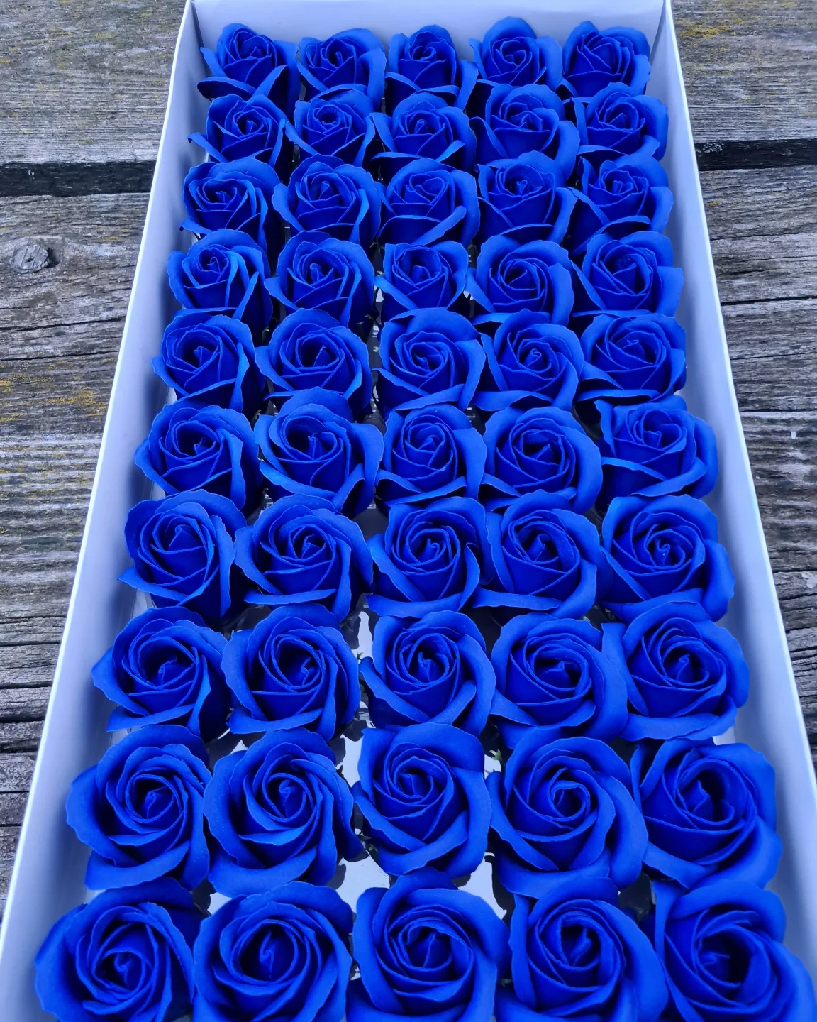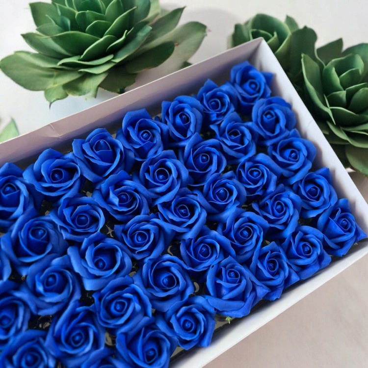 Декоративні мильні троянди Квіти 50 шт, ТЕМНО-СИНІ для оформлення квіткової коробки