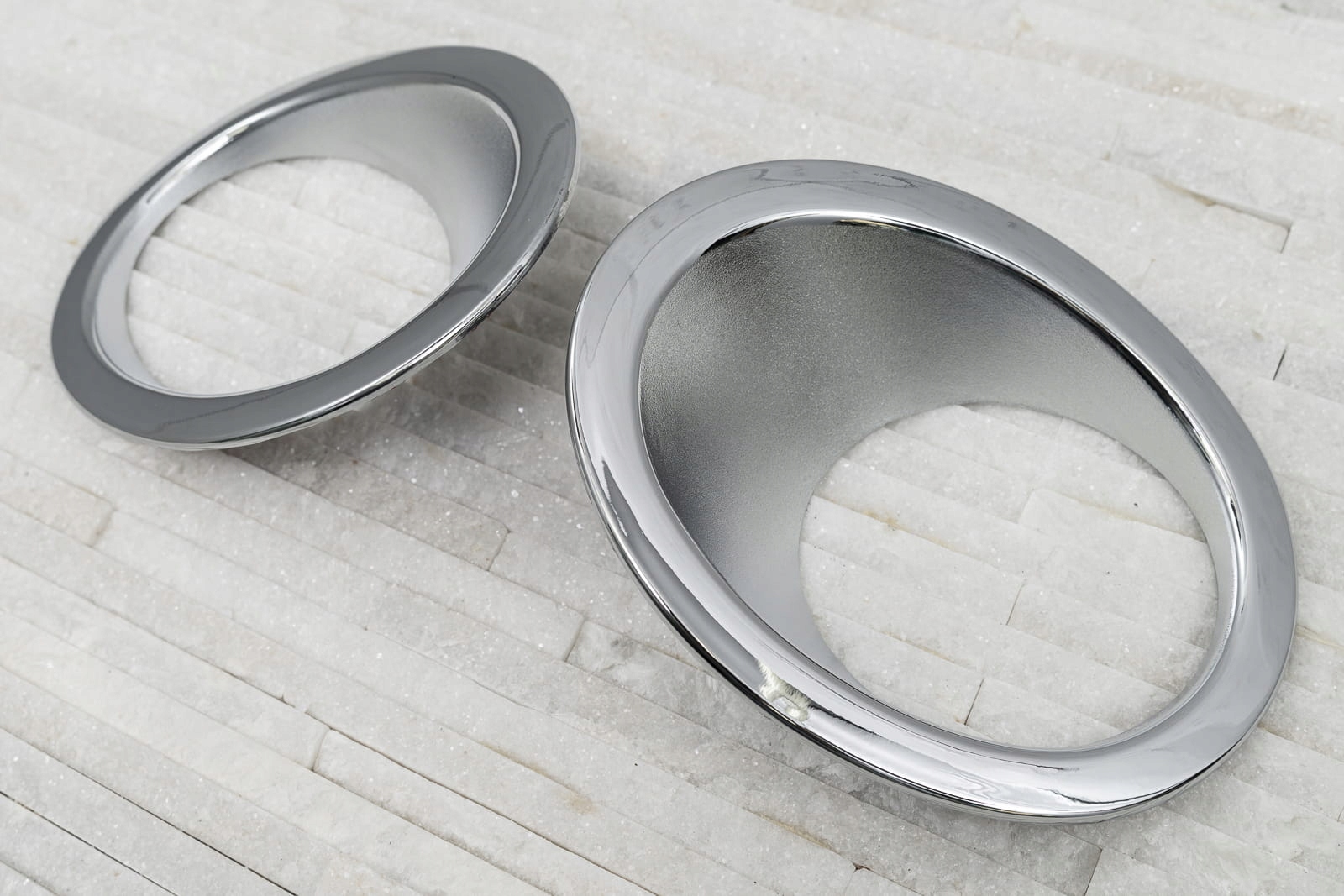 Виріб виготовлено з високоякісного хромованого ABS-пластику. У комплект входить набір з двох галогенних чохлів.