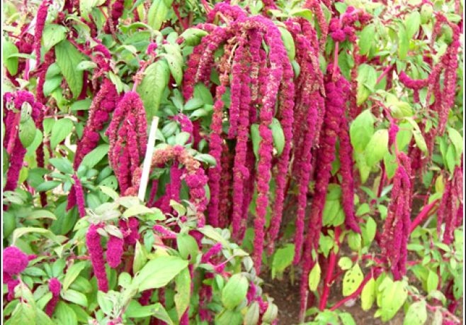 Декоративна однорічна рослина, висотою 60-90 см, з красивими звисаючими темно-червоними суцвіттями, що зберігають свою декоративність після висихання.